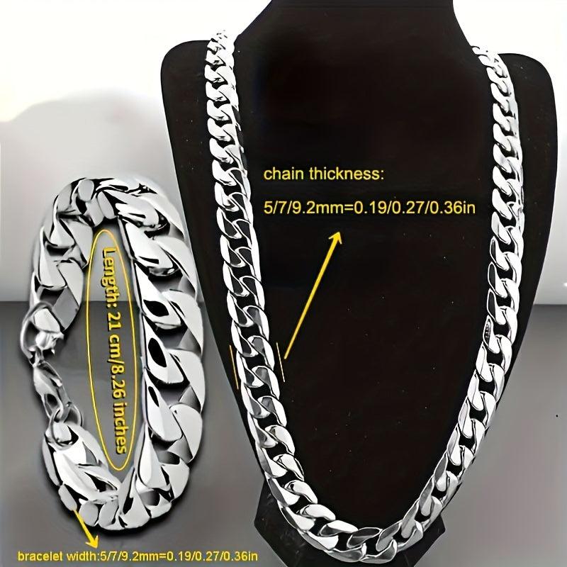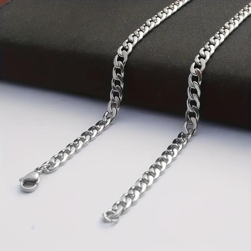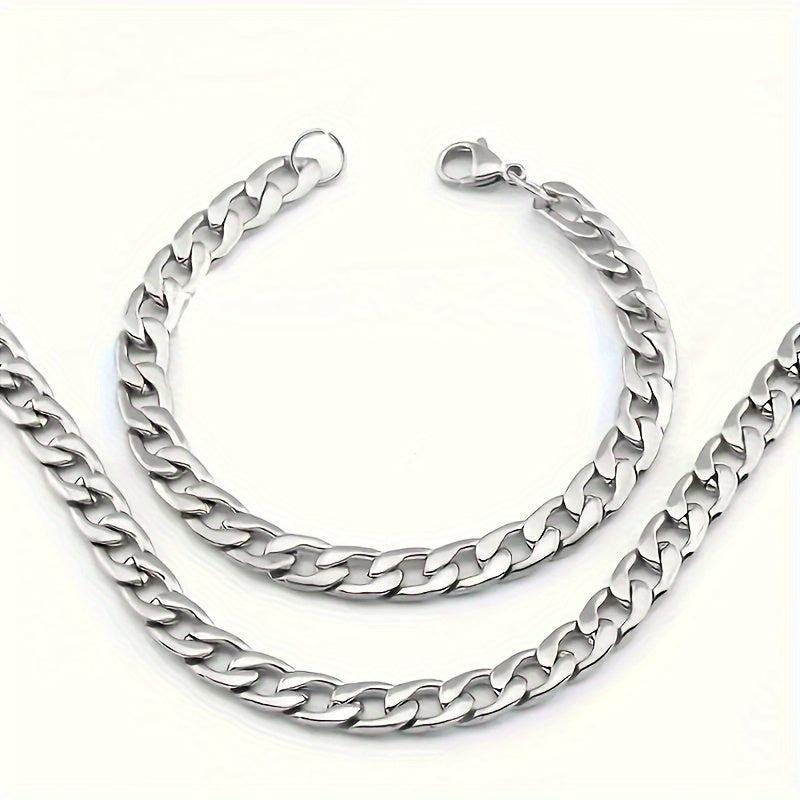 This set includes a stainless steel necklace and bracelet suitable for both men and women. High-quality material and stylish design.
