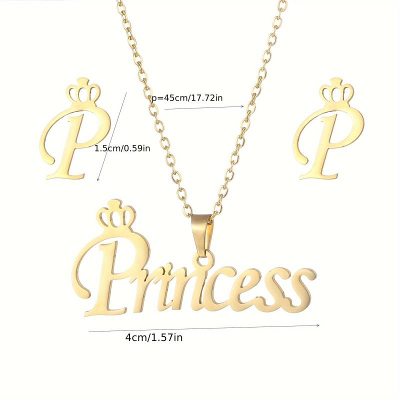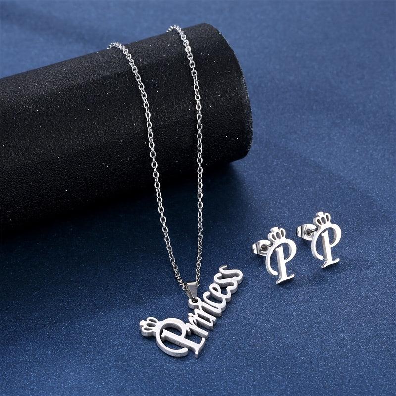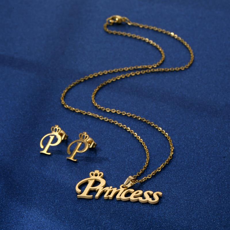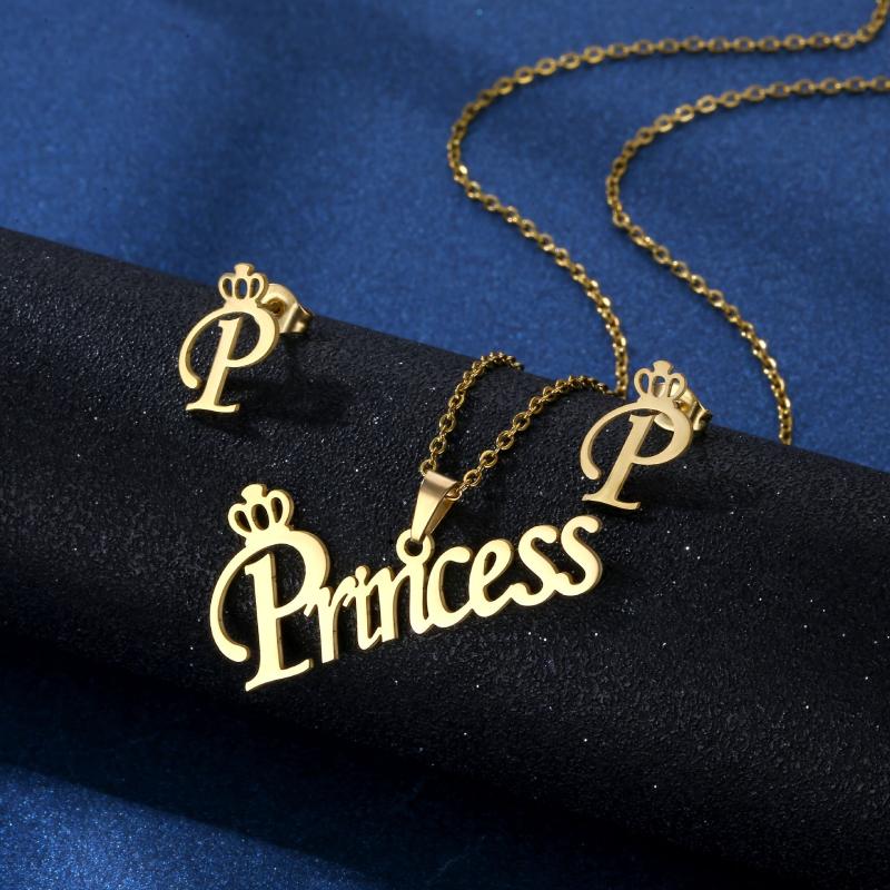 Stainless Steel Princess Necklace Set Ins Wind Clavicle Chain Earrings