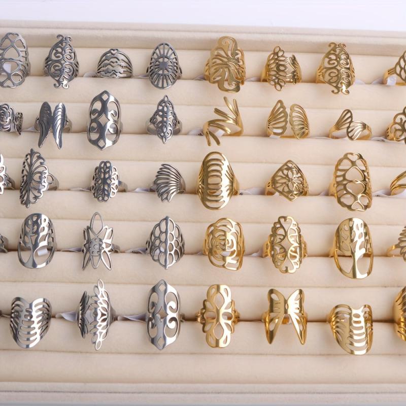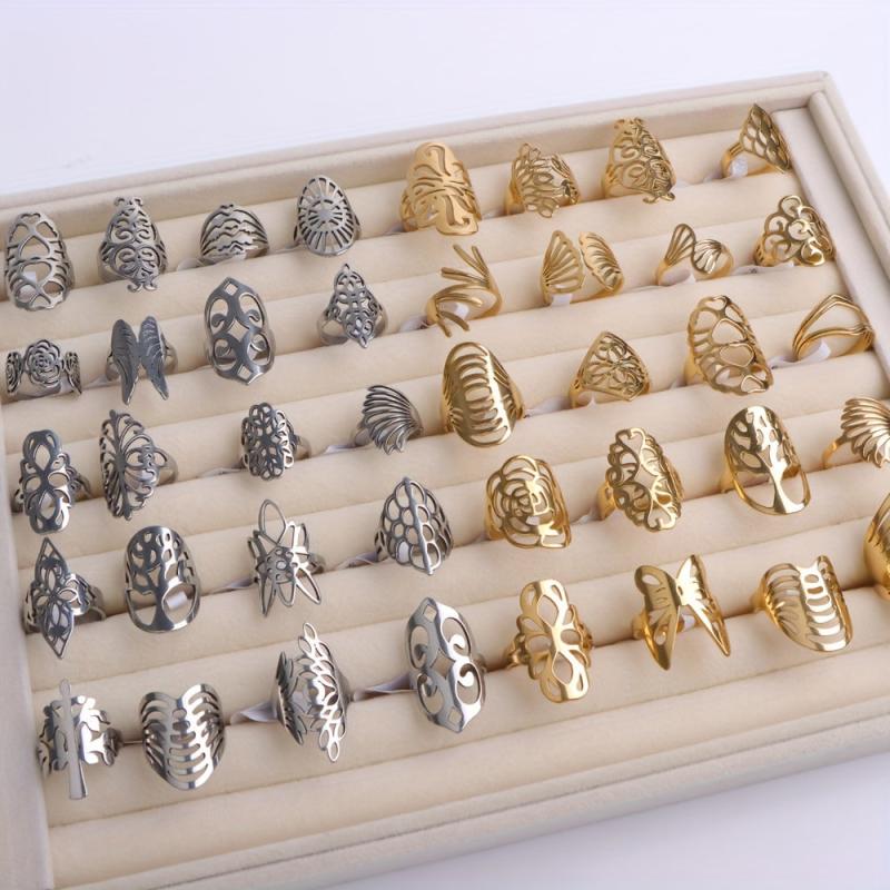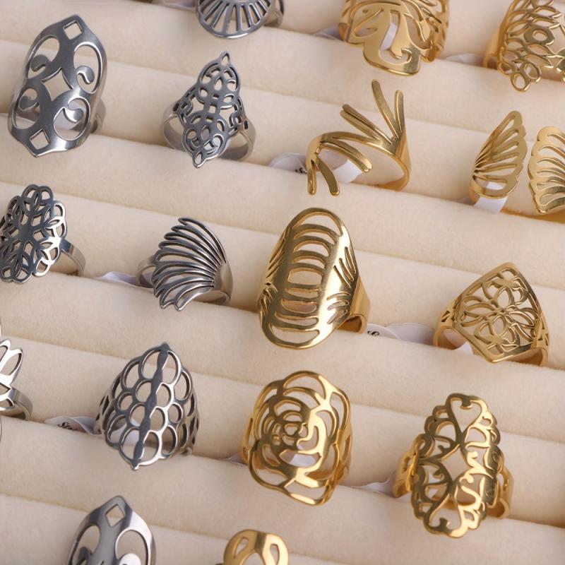 Elevate your style with these stainless steel women's rings featuring geometric line designs. Perfect for daily wear and parties, these vintage-inspired rings make an ideal gift for her. The minimalistic design adds a touch of elegance to any outfit.