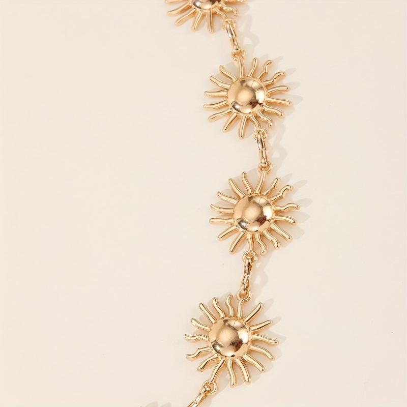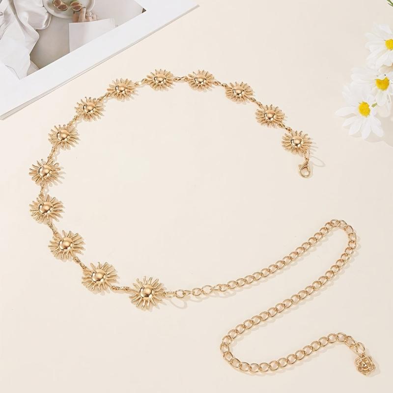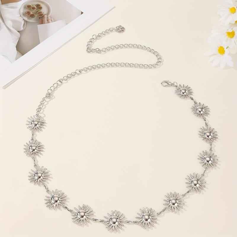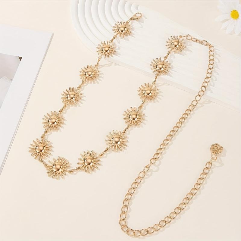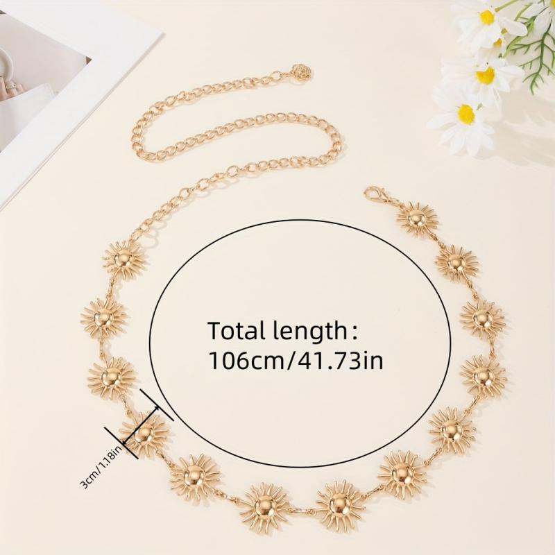 Elevate your beach party look with this stylish and delicate sun shaped waist chain, perfect for a retro bohemian vibe. Add a touch of elegance to your outfit.