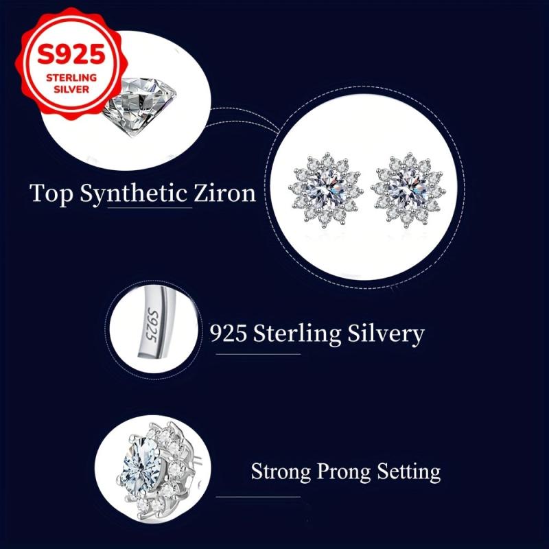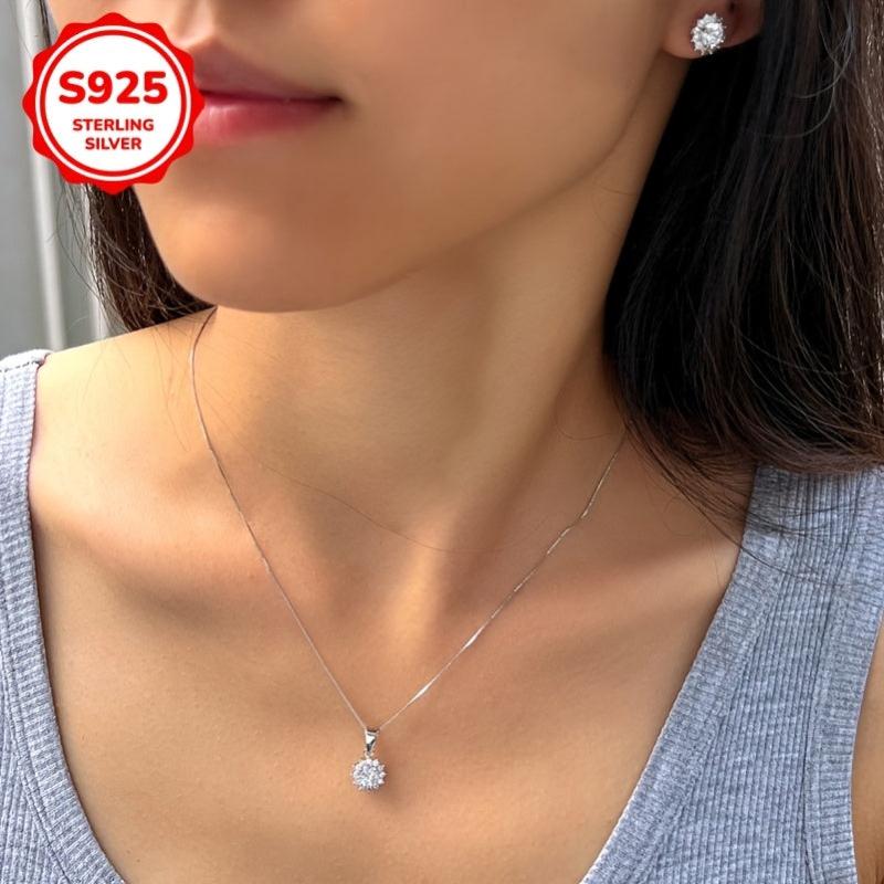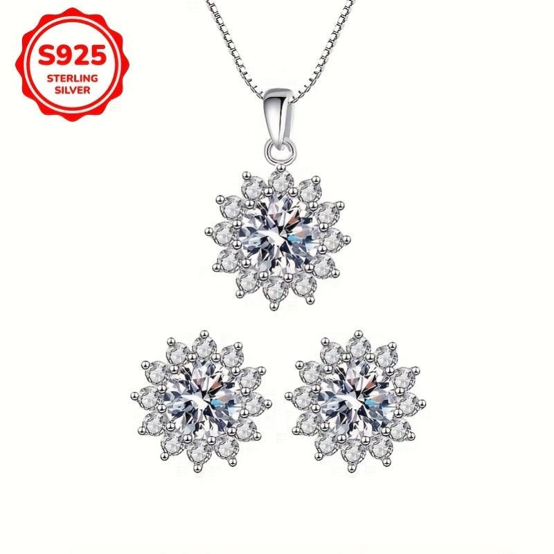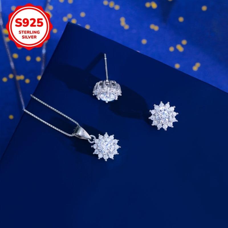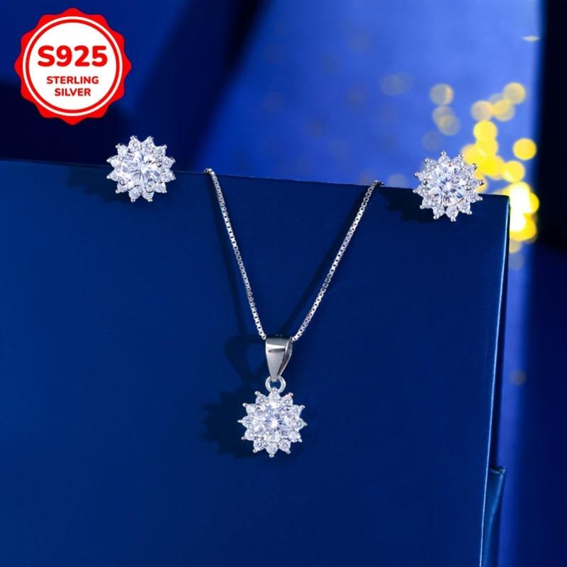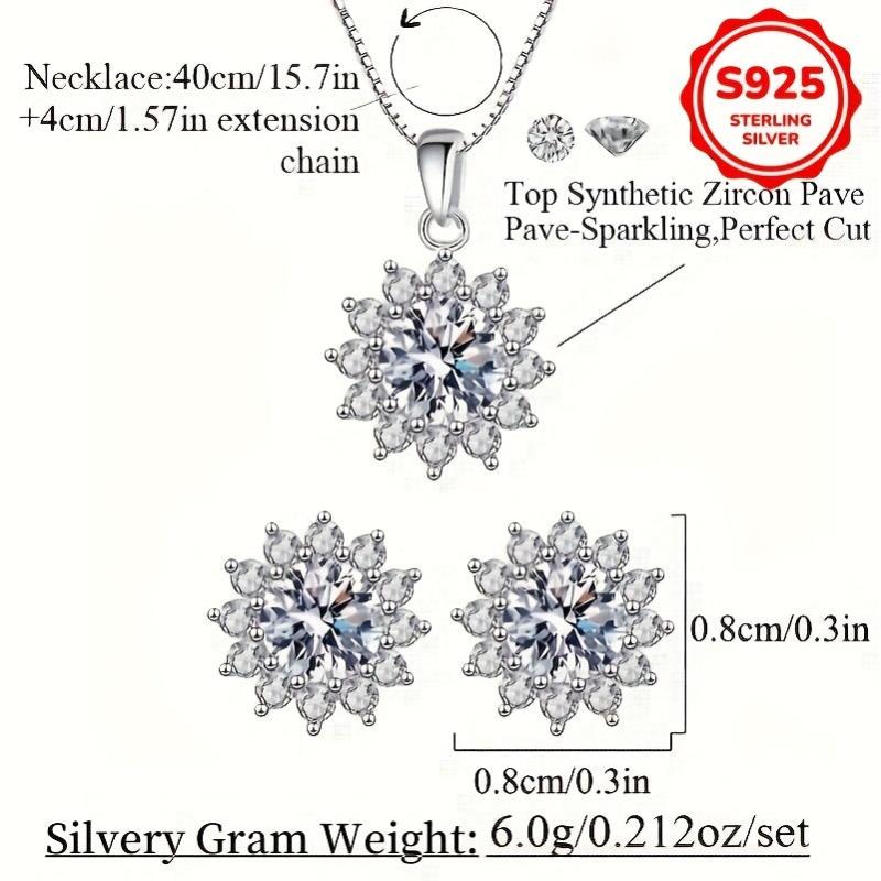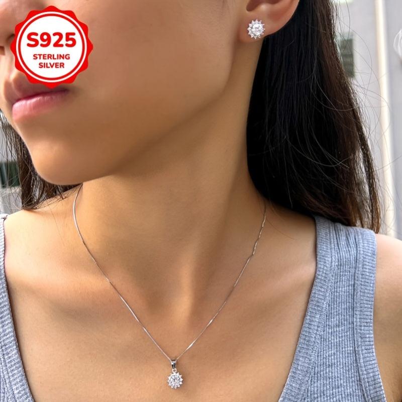 Adorn yourself with this exquisite jewelry set crafted from 925 sterling silver. The set includes a pair of low-allergy earrings and a necklace featuring a stunning sunflower pendant.