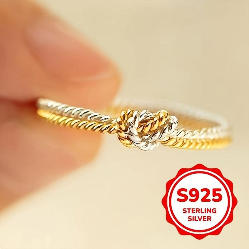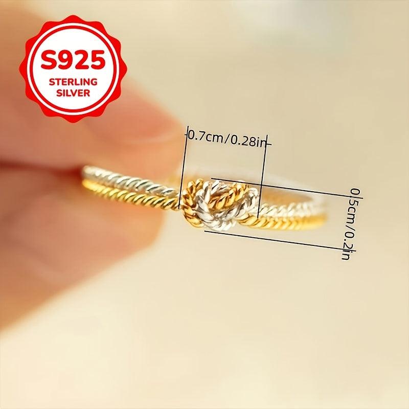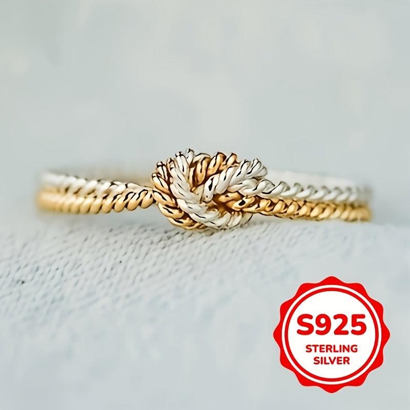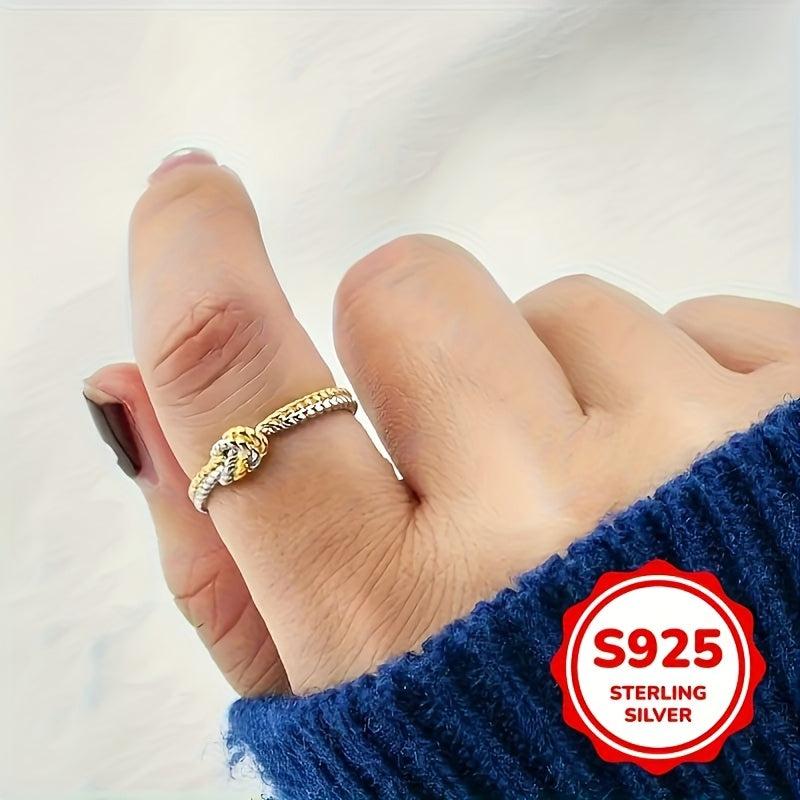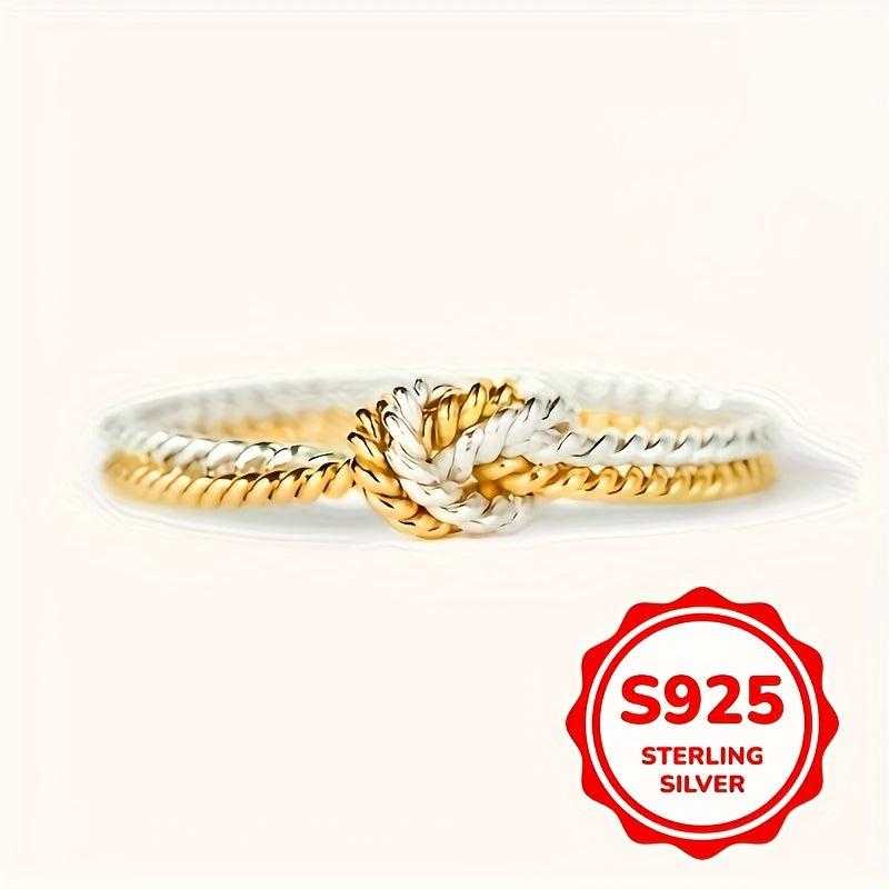 Beautiful two-tone 925 sterling silver ring featuring a twisted knot design, perfect for anniversary or birthday gift. This elegant jewelry piece adds a touch of sophistication to any outfit.