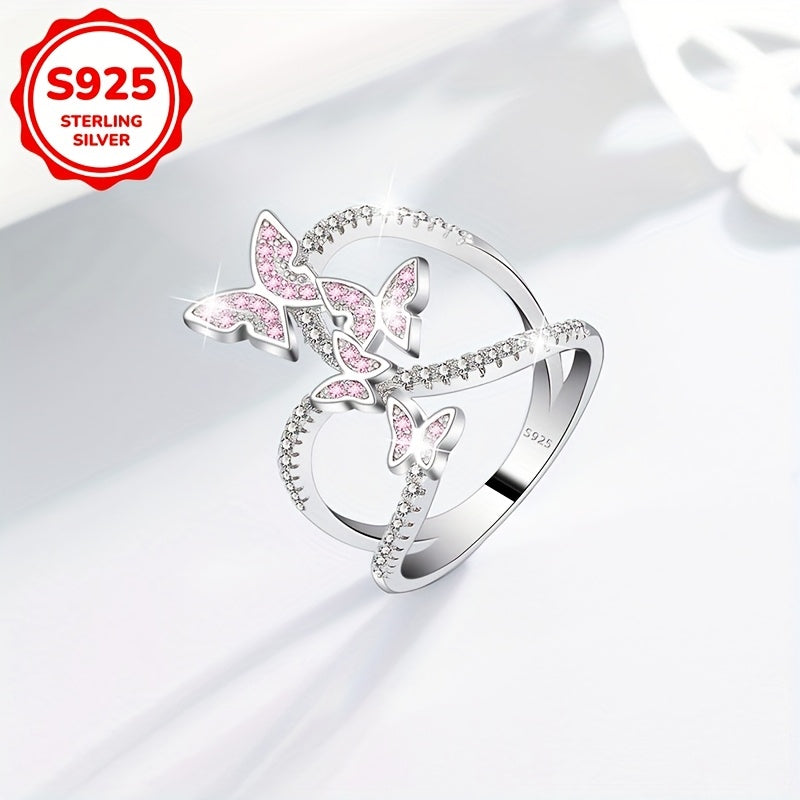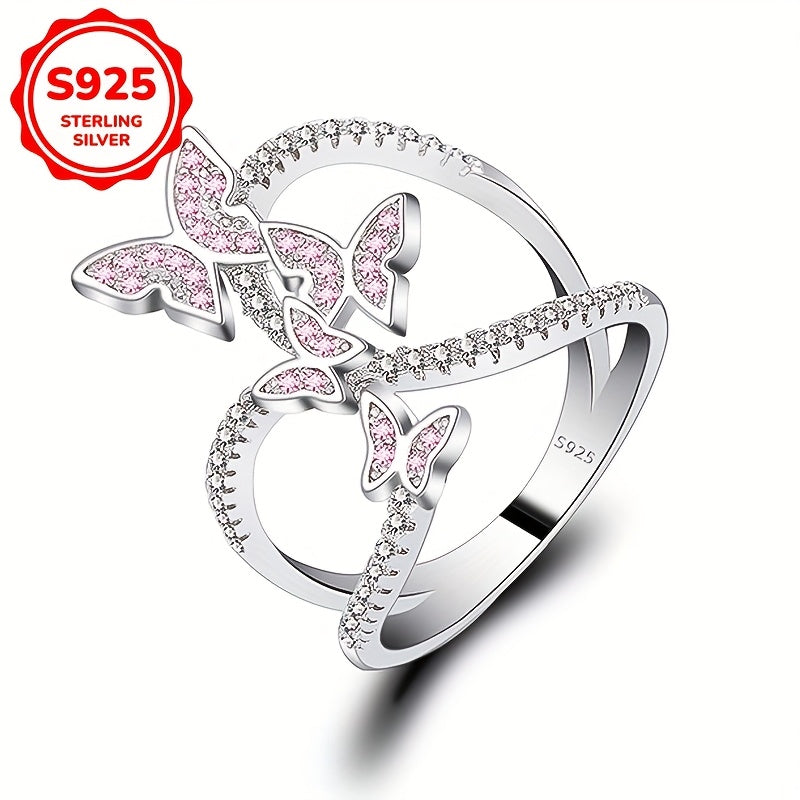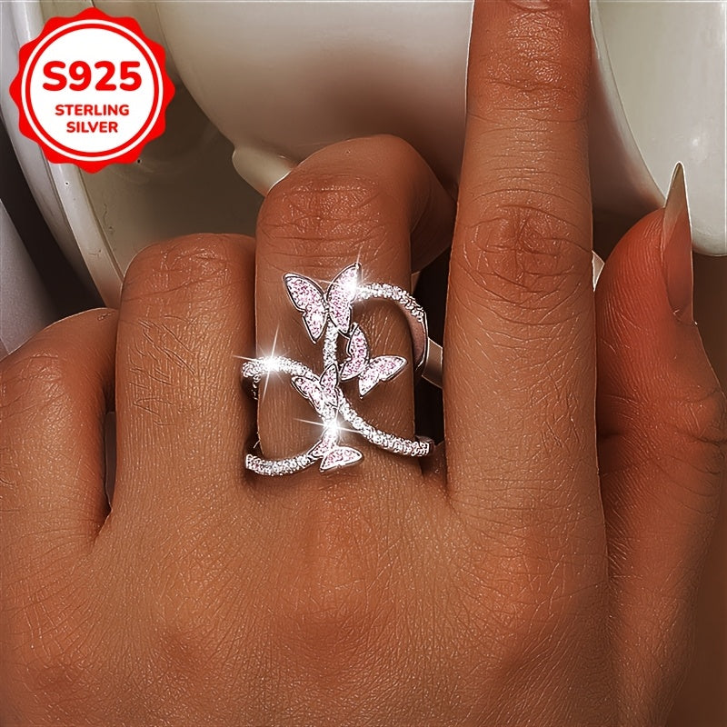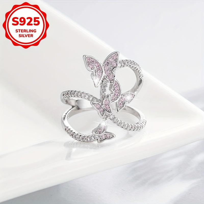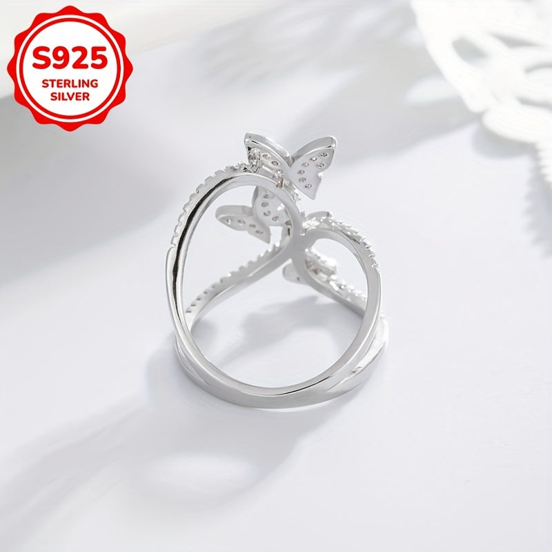 Elevate your style with this stunning butterfly ring made of 925 silver. The intricate design features synthetic zirconia for a touch of elegance.
