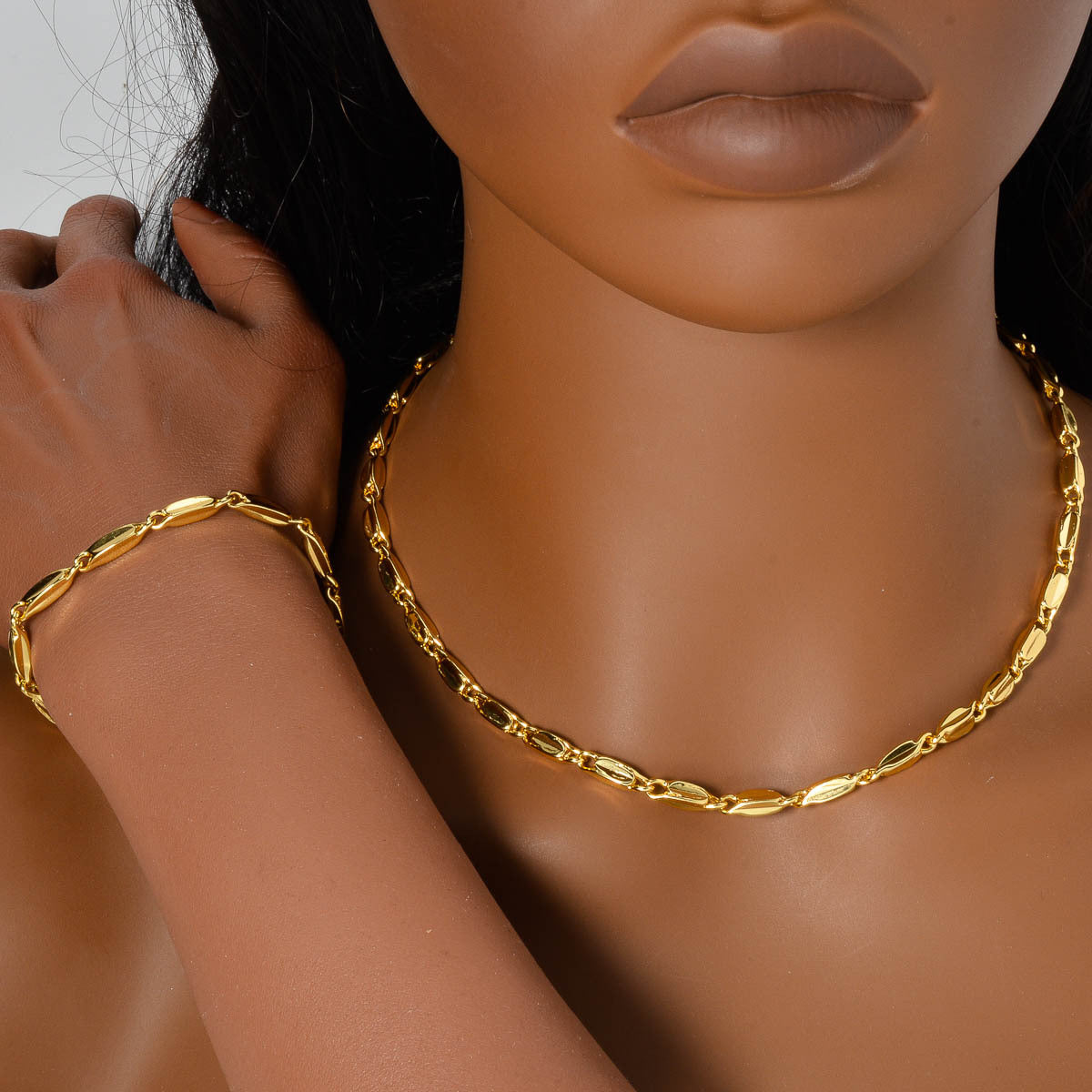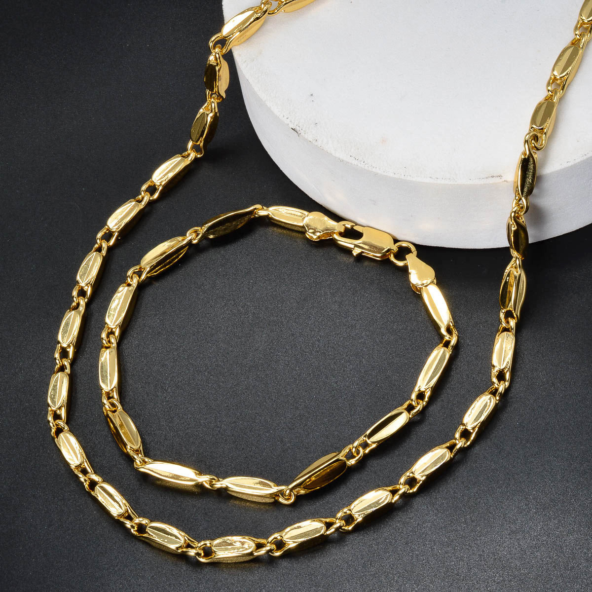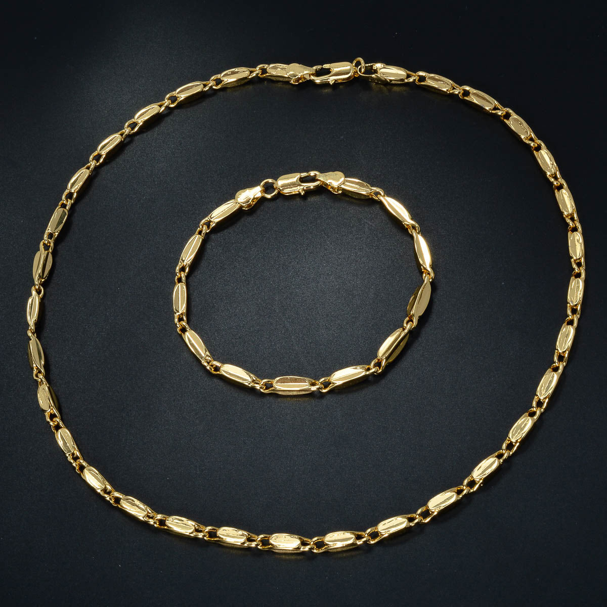 This unisex jewelry set is designed in a hip hop style, perfect for parties and daily wear. It includes a necklace and a bracelet that are made from copper material. An ideal classic gift for all seasons.