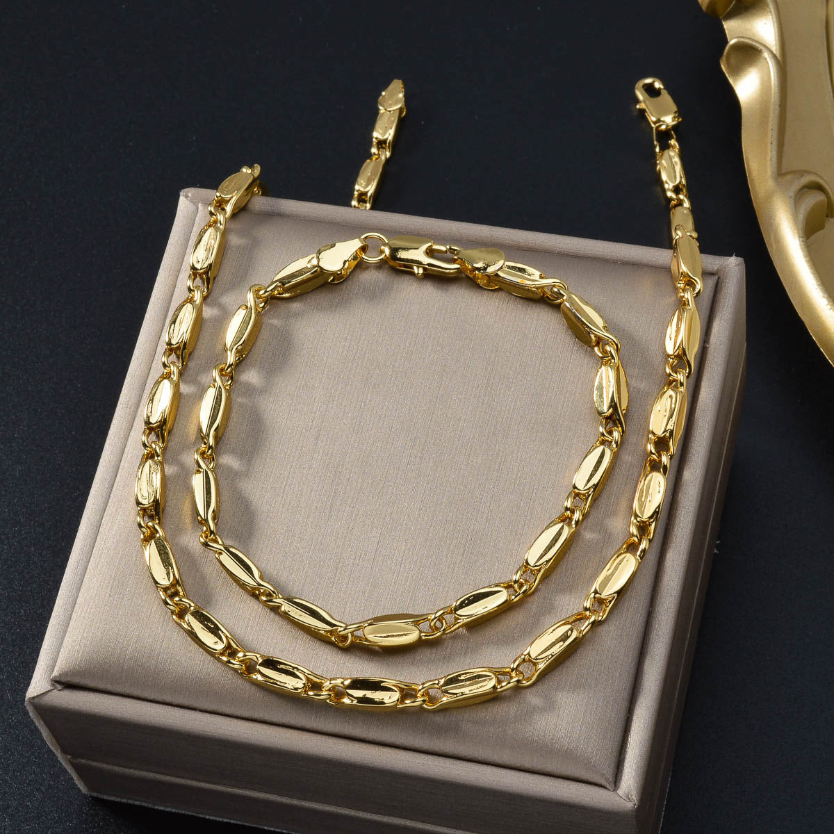 Unisex Copper Hip Hop Style Jewelry Set with Necklace and Bracelet