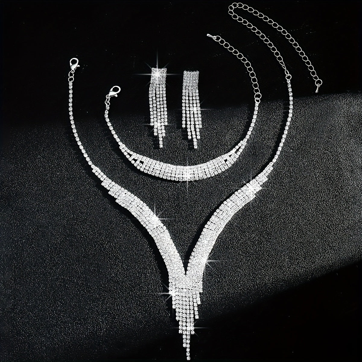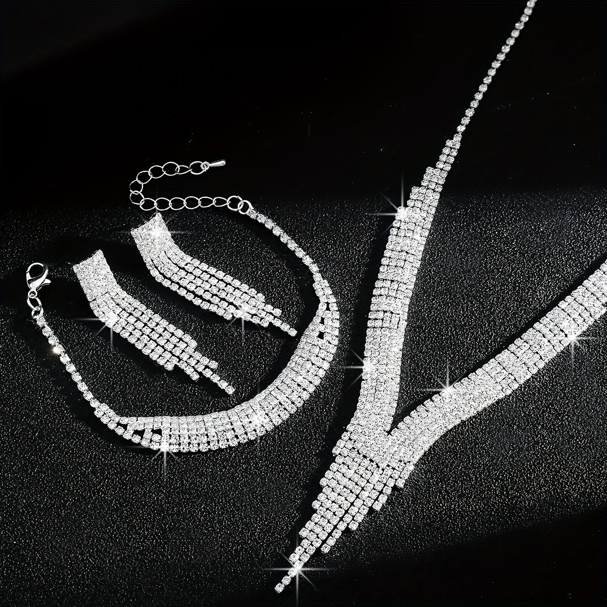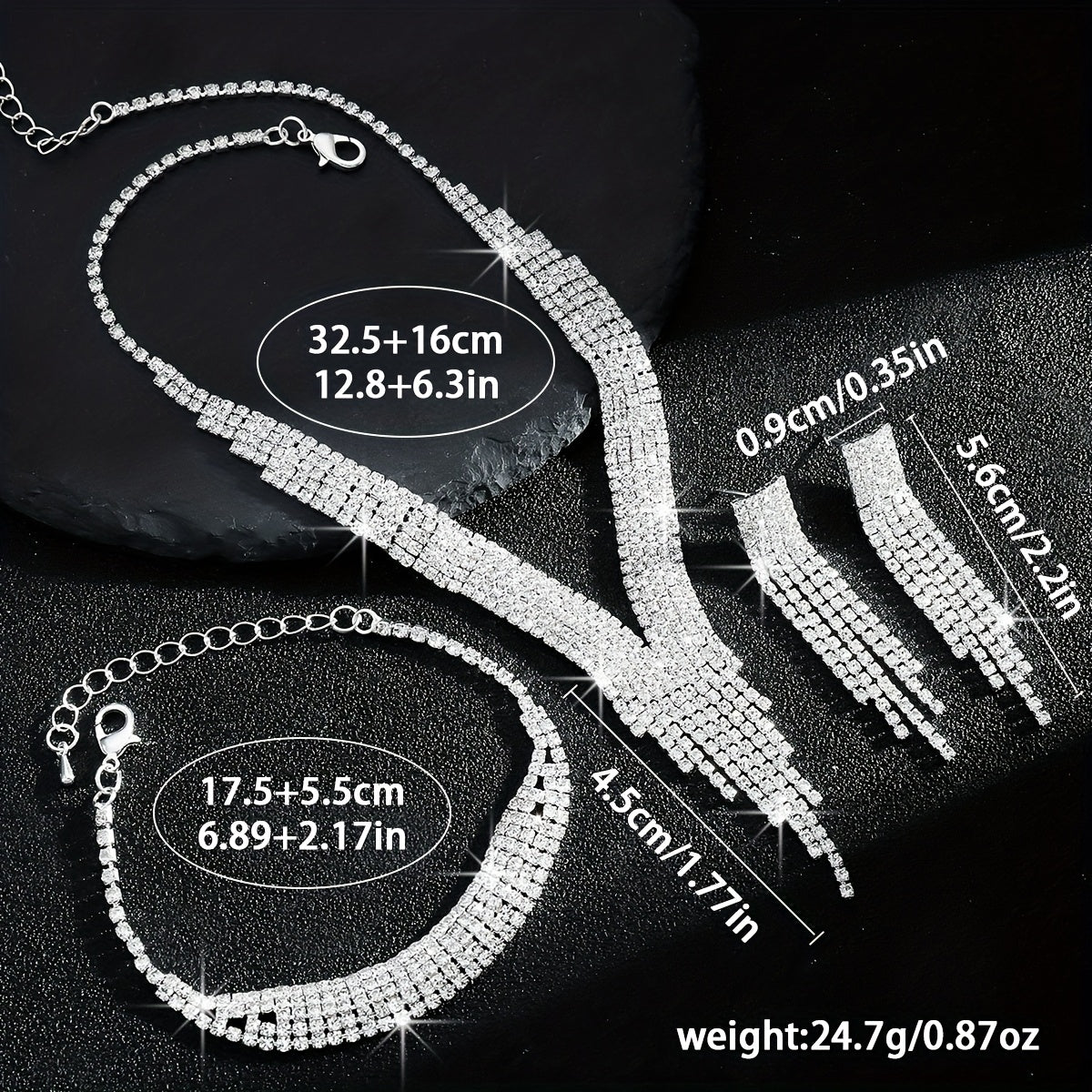 Sparkling rhinestone jewelry set with tassel design, perfect for music festivals and Mardi Gras. Copper plated in golden color.