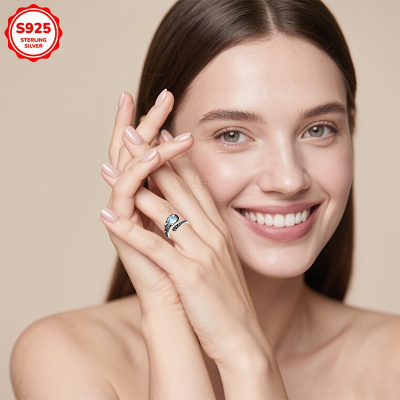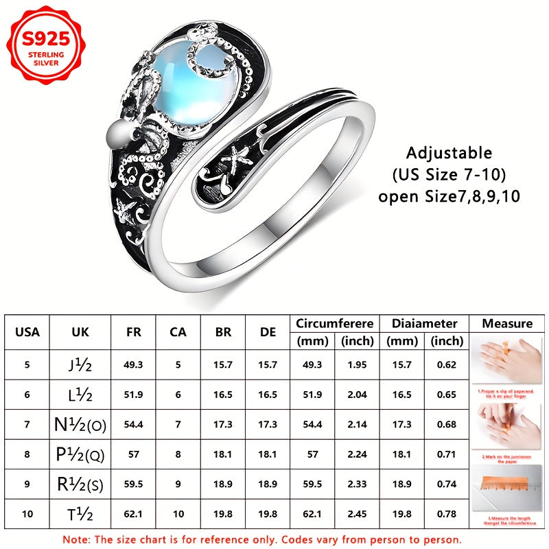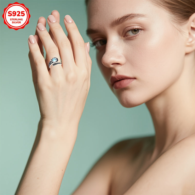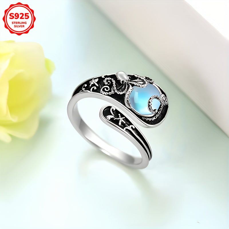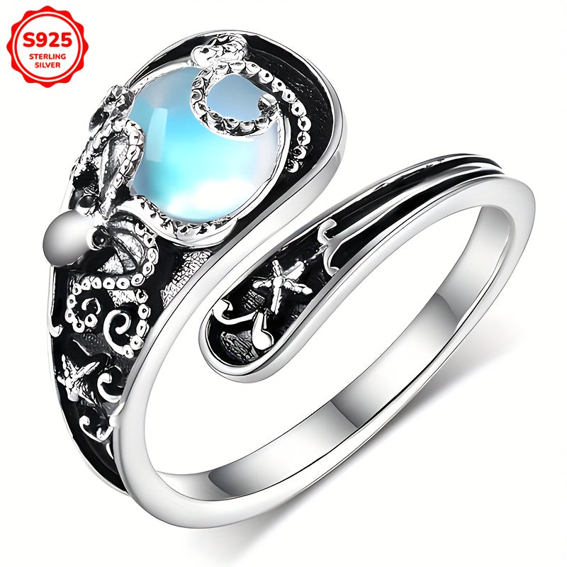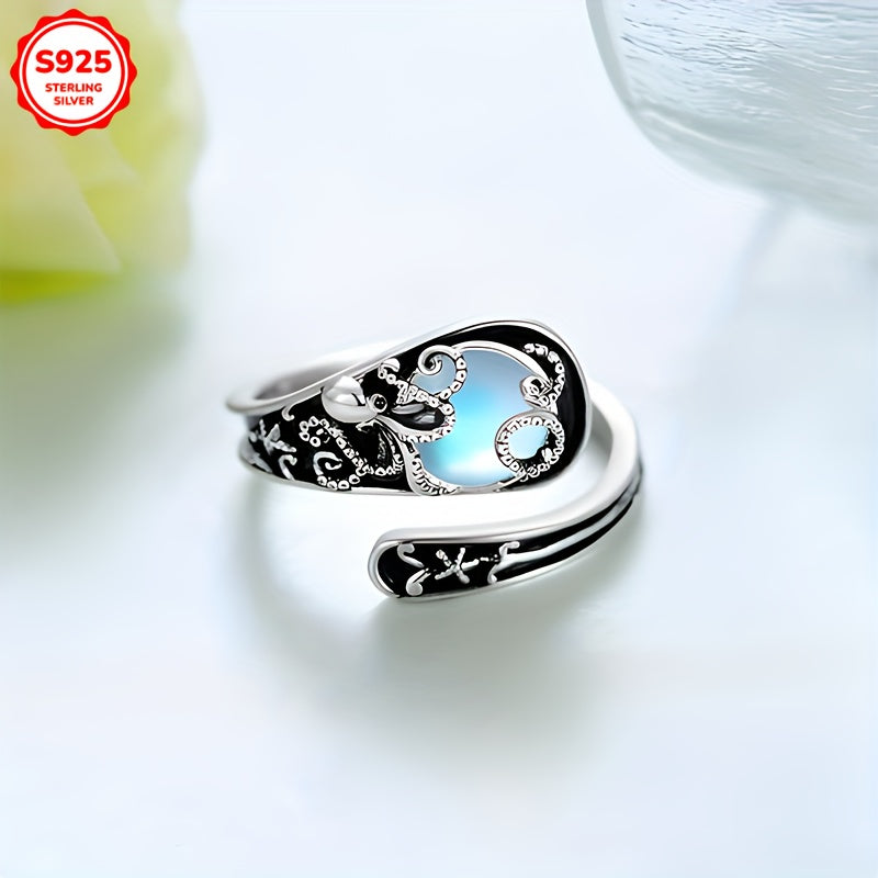 This vintage bohemian 925 sterling silver ring features a charming moonstone fish design. Perfect for daily wear, parties, and holidays.