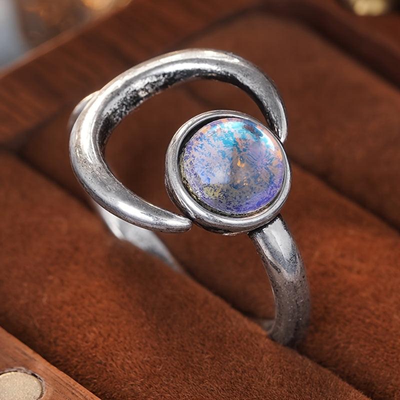 Celebrate June birthdays with this golden-plated celestial ring featuring a moonstone inlay. Perfect for daily wear and bohemian style lovers.