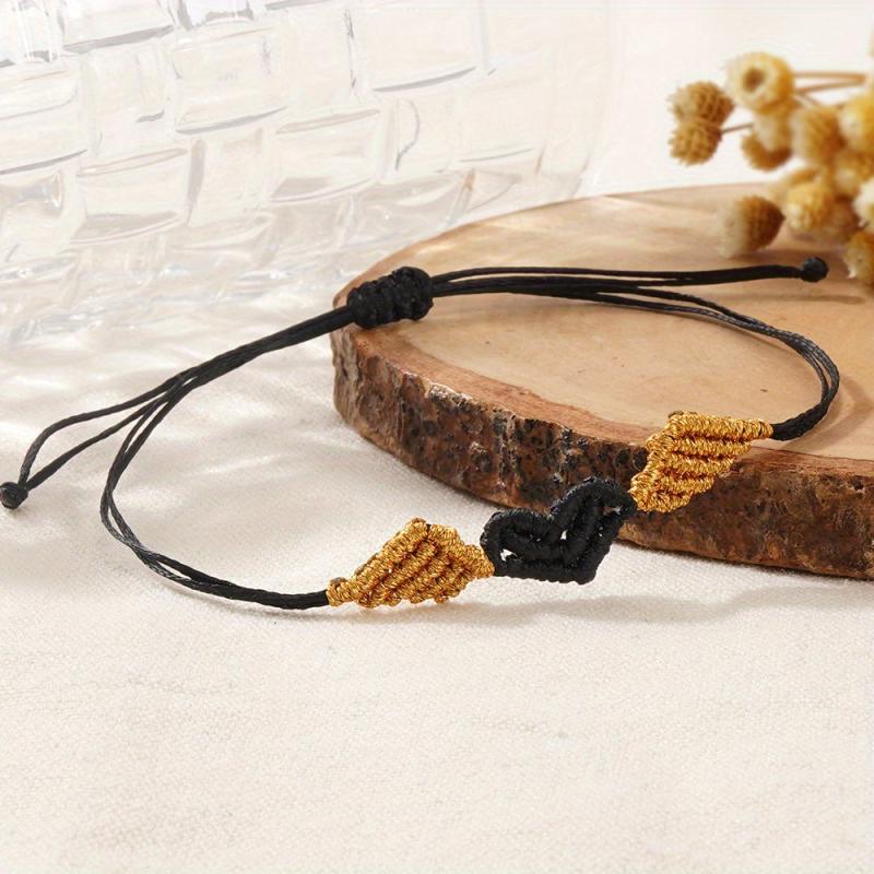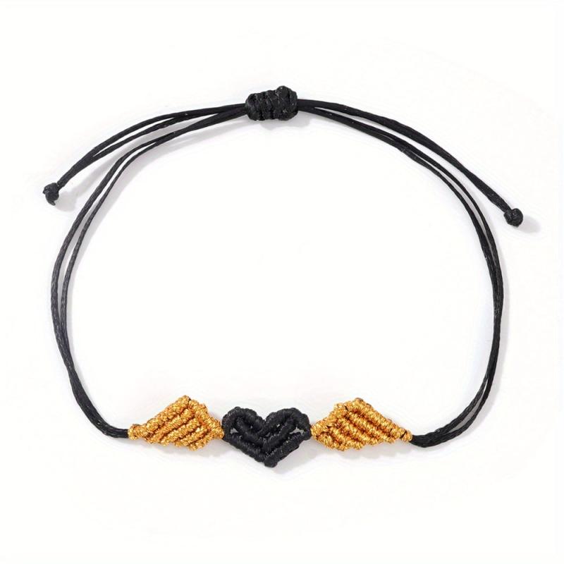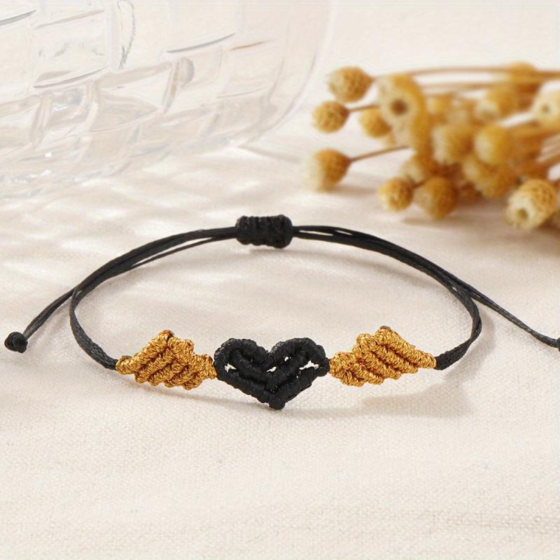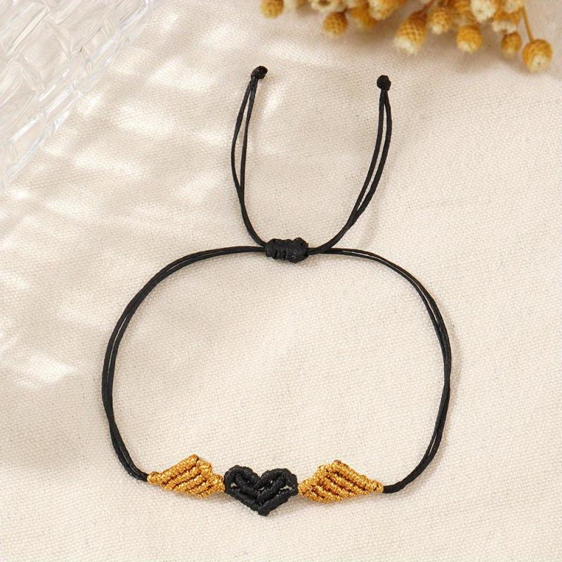 This braided bracelet features a charming heart and wing charms, making it an ideal gift. Made of polyester material, it is perfect for daily wear.