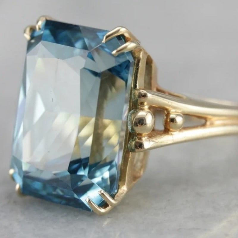 Elegant ring featuring zirconia gemstone in a golden tone metal setting. Perfect for daily wear or gifting, this vintage boho style piece adds a touch of charm to any outfit.