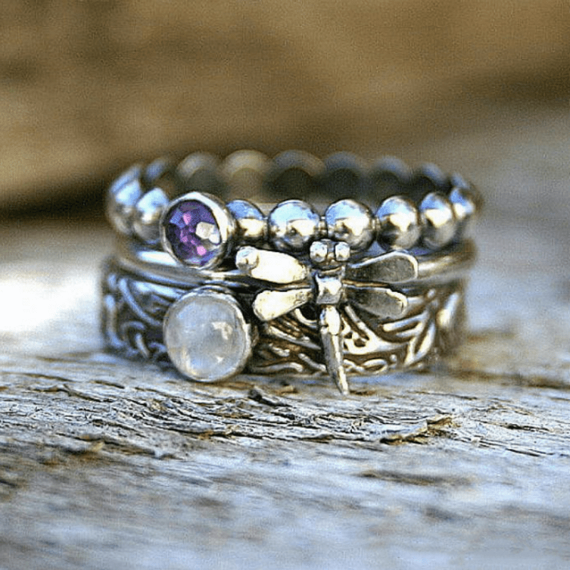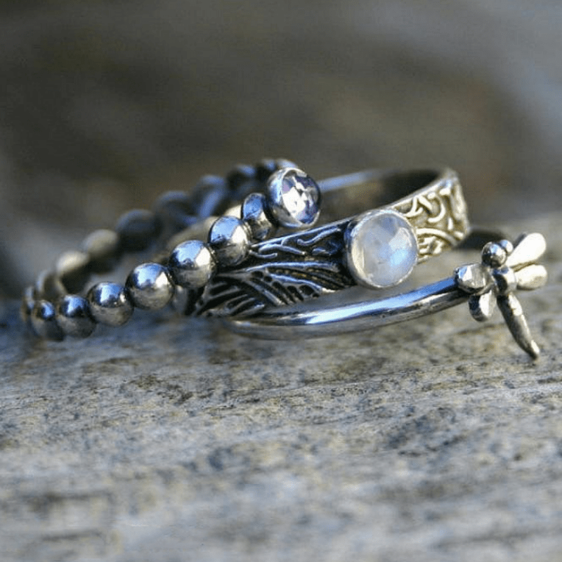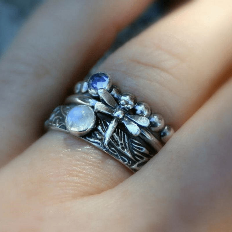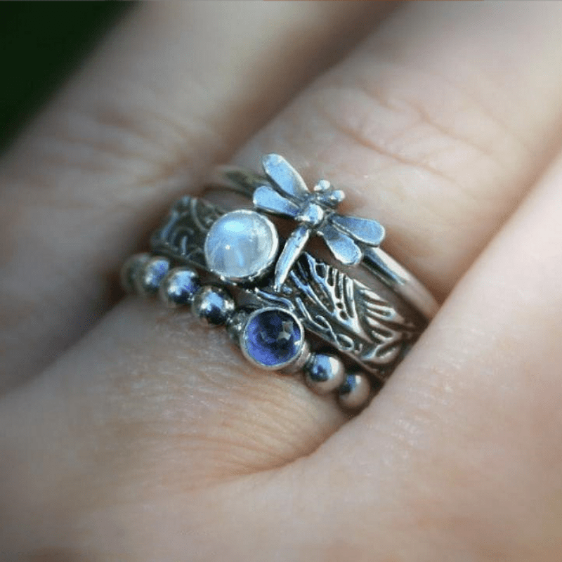 Add a touch of vintage charm with this dragonfly ring set featuring artificial gemstones. A perfect gift for women who love unique jewelry pieces.