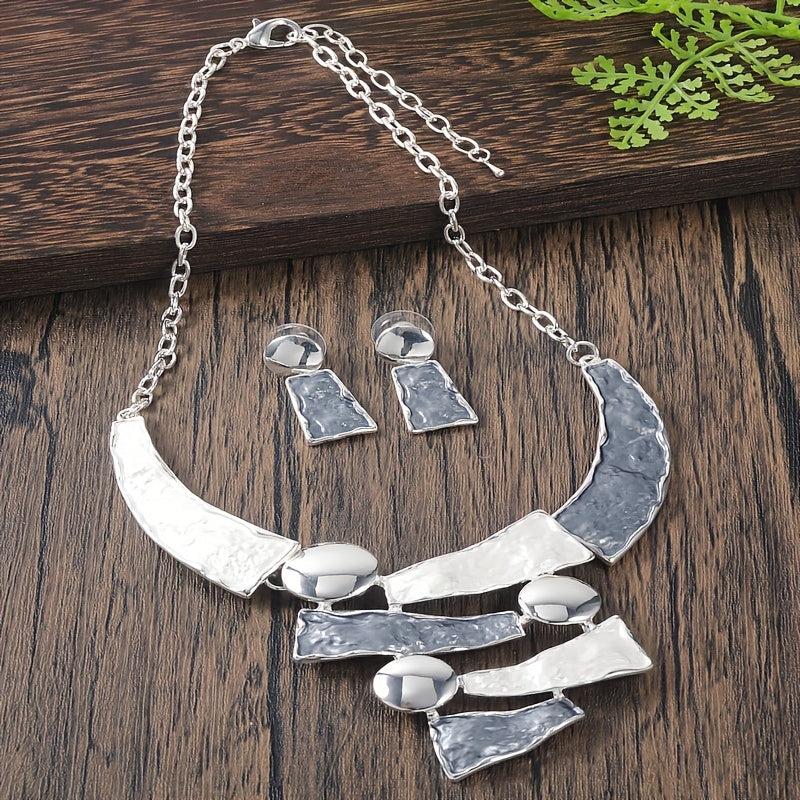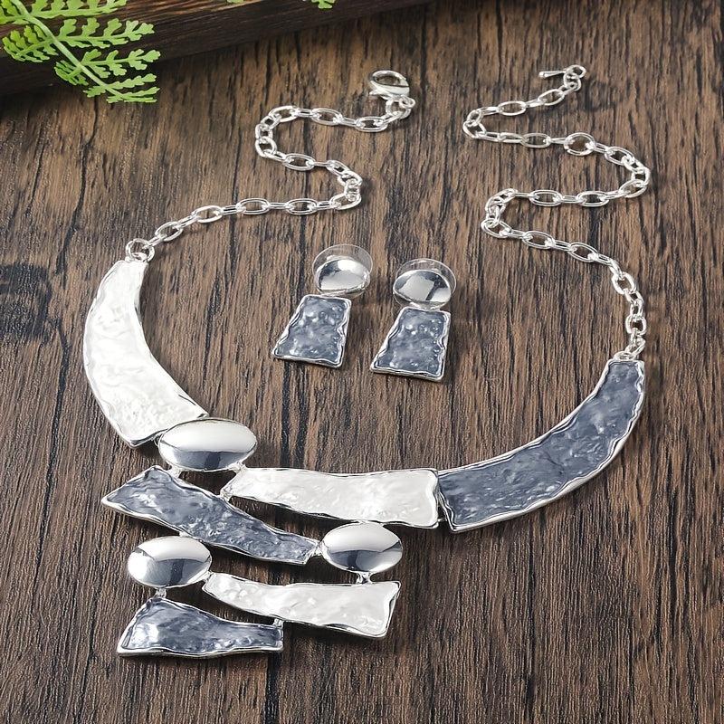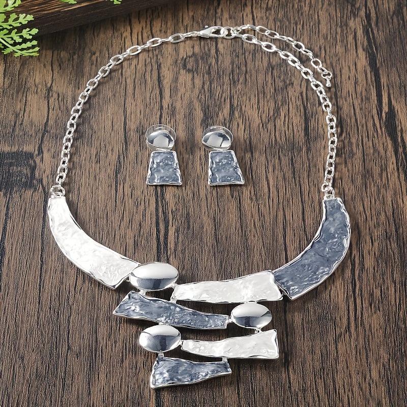 This fashionable women's jewelry set features a vintage enamel design on a thin alloy chain. Perfect for a matching date gift, this bohemian necklace with geometric pendant adds a stylish touch to any outfit.