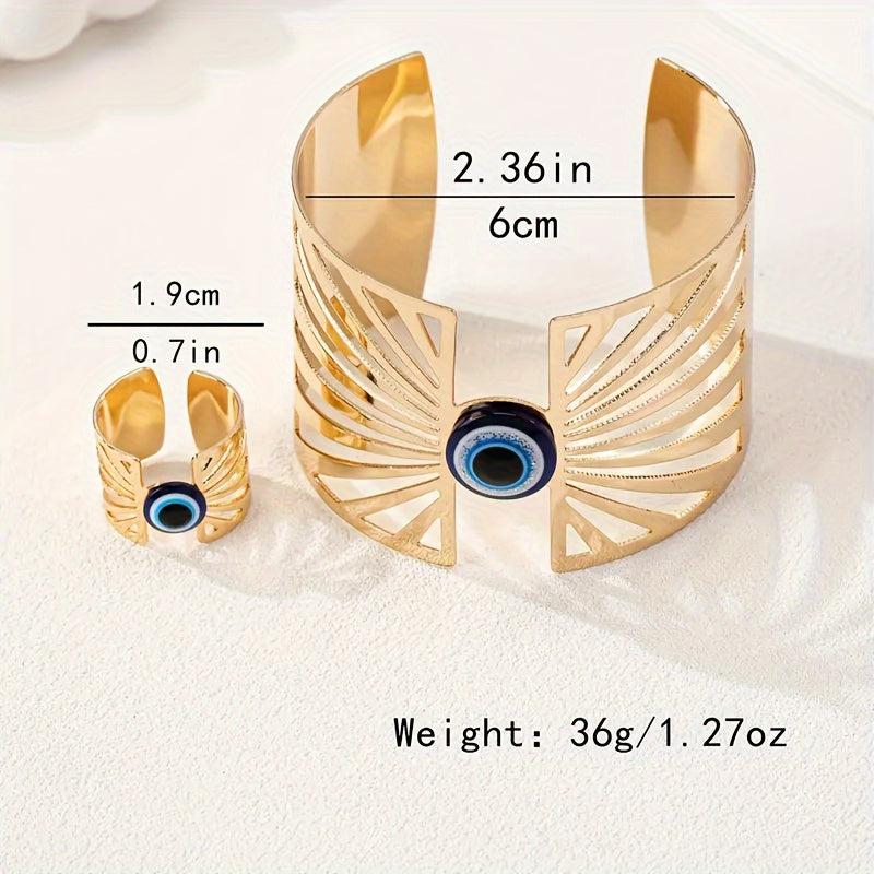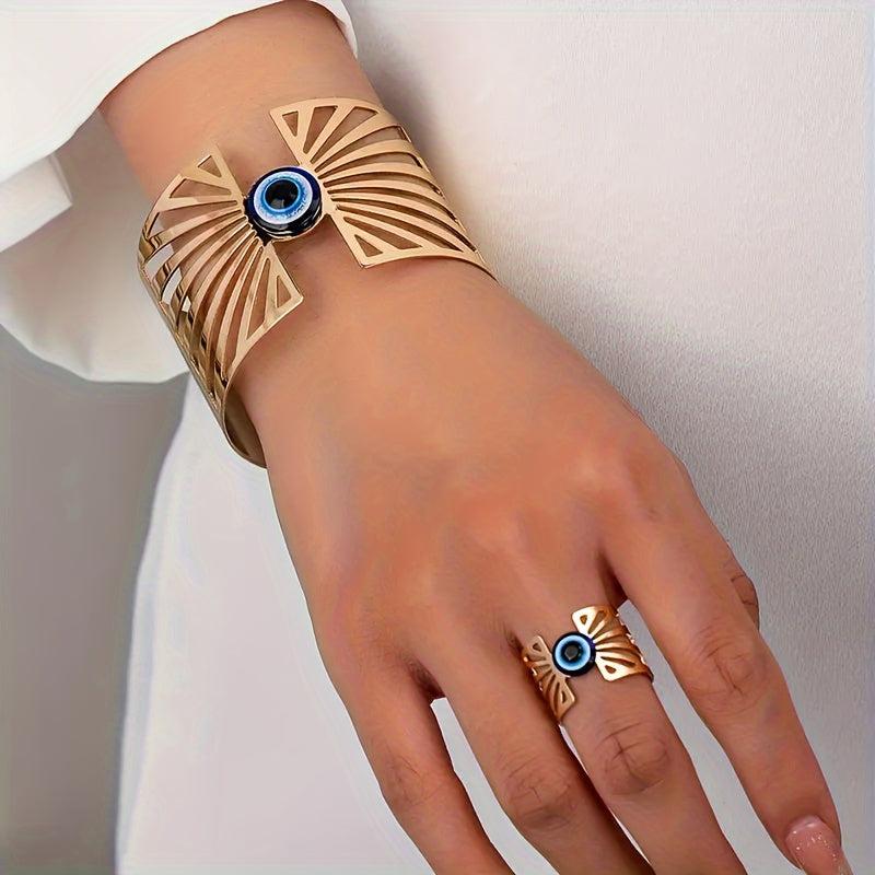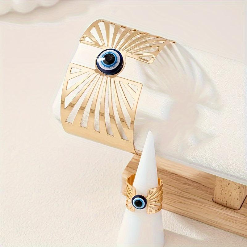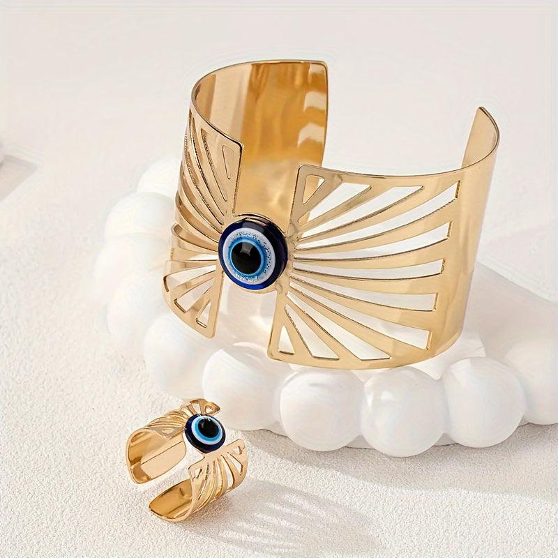 Elegant jewelry set featuring eye motif design with golden accents. Perfect for daily wear and special occasions.