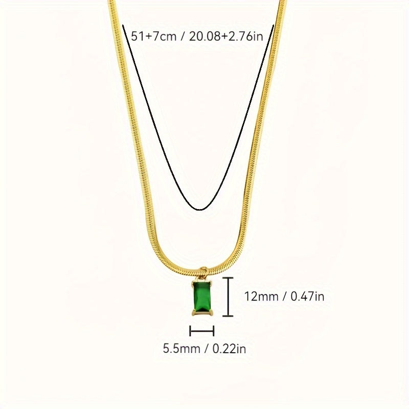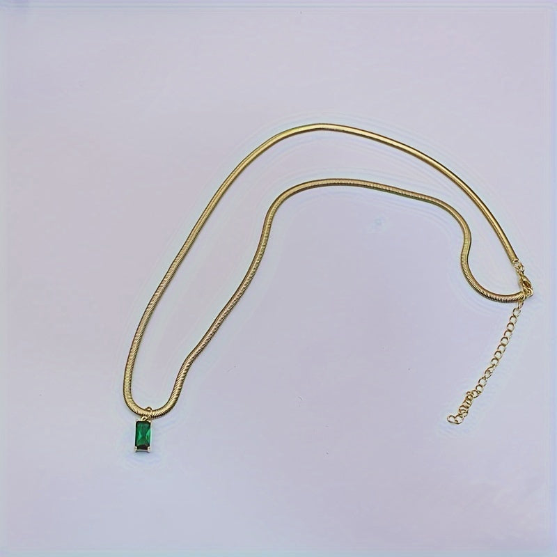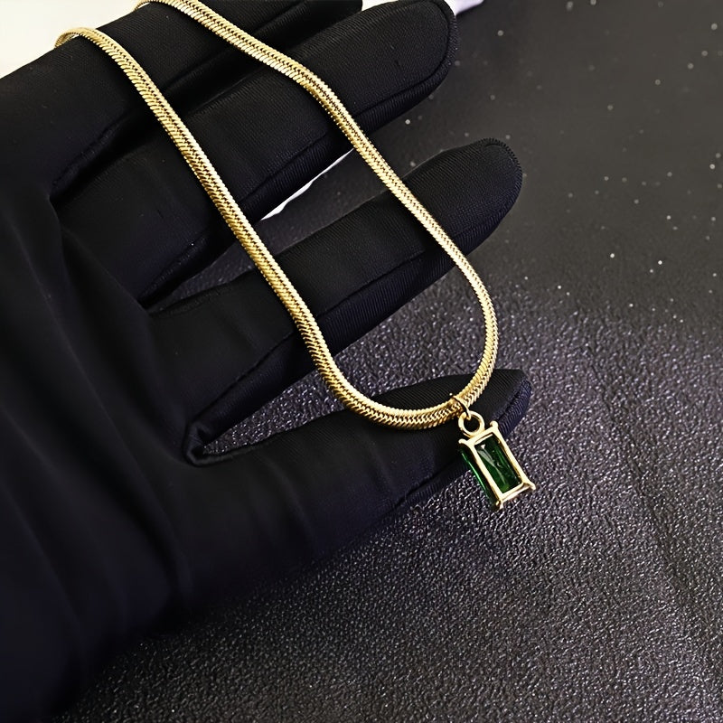 Vintage Geometric CZ Pendant Necklace Set with Snake Chain