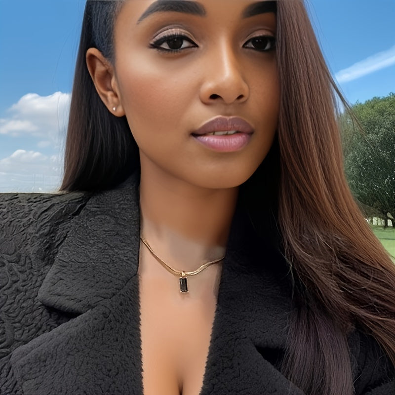 Elegant and stylish pendant necklace set with cubic zirconia stones. Perfect for daily wear or vacation.