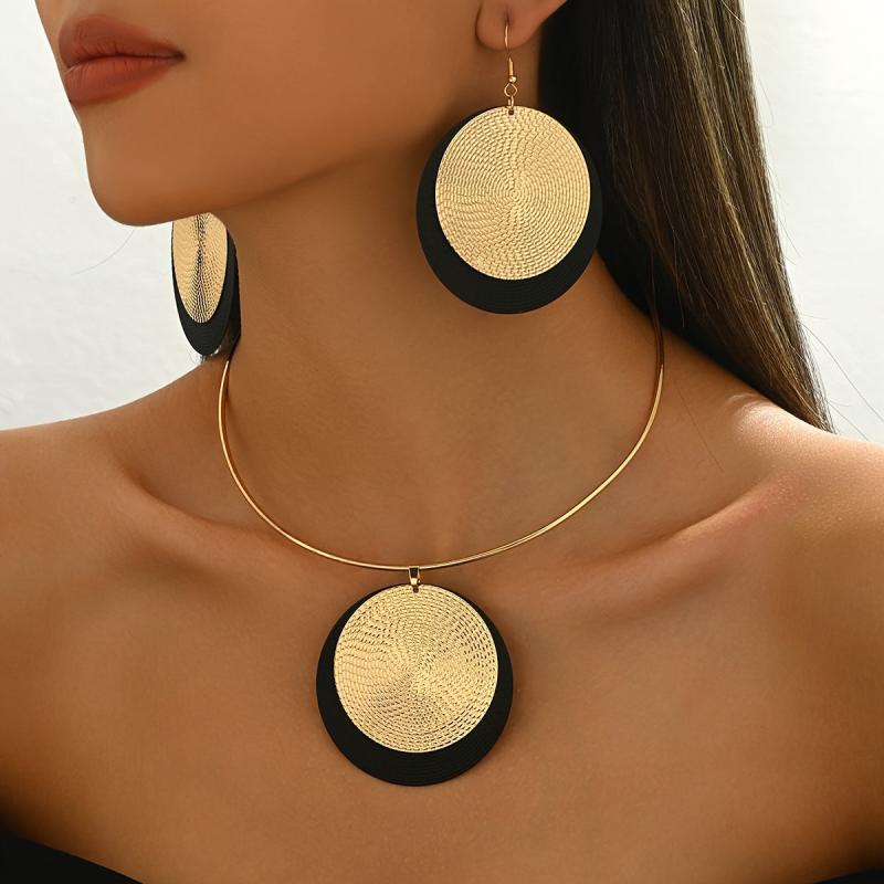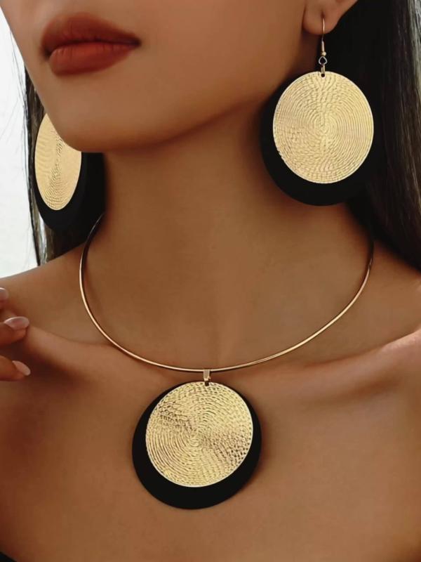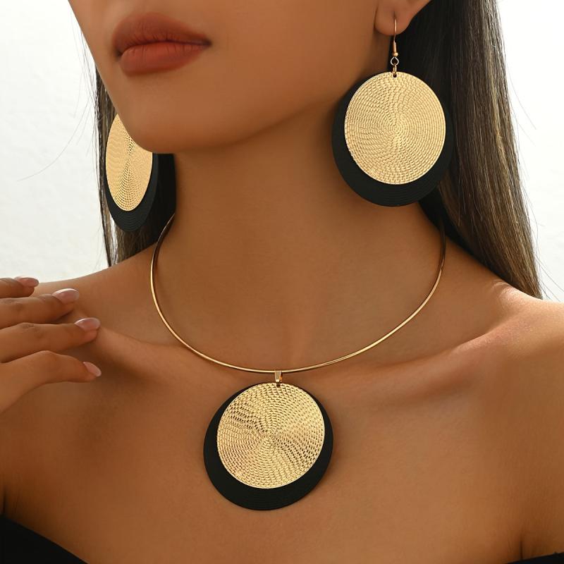 This 3-piece jewelry set features glossy mixed colored geometric pendants that add a touch of vintage and minimalist style to your attire. Perfect for both casual wear and special occasions.