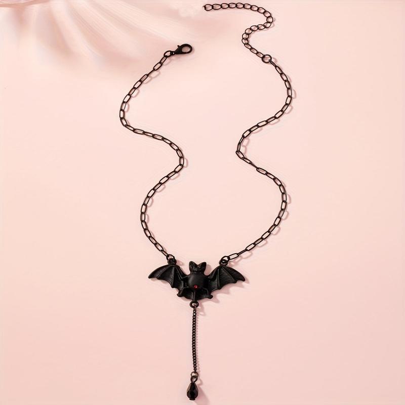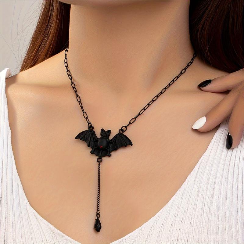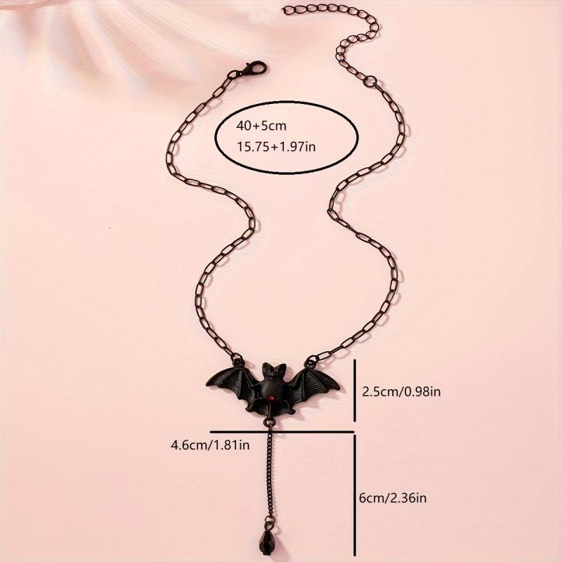 This Halloween bat pendant necklace is perfect for parties and year-round wear. The lightweight and durable design features red gemstone eyes for a touch of elegance.