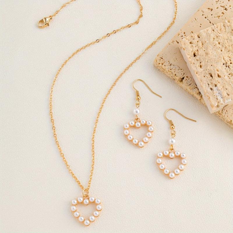 This set includes a sweet and fashionable heart necklace and earrings, perfect for adding a romantic touch to your outfit. The vintage, geometric design gives off a sexy and bohemian vibe, ideal for any occasion.