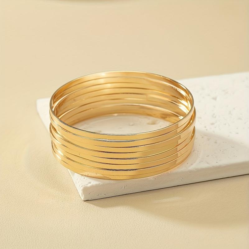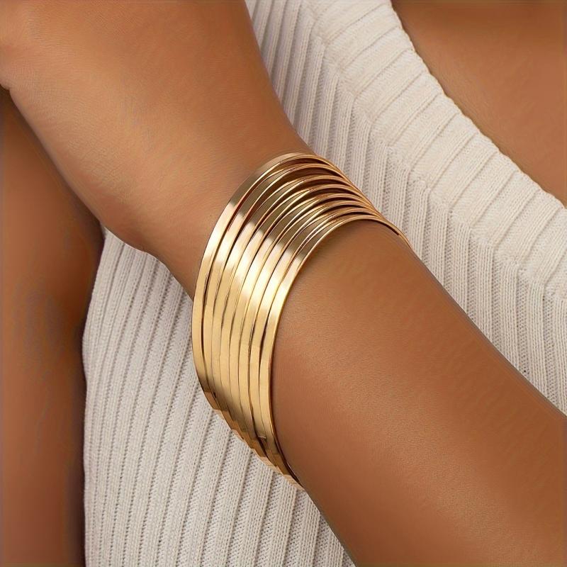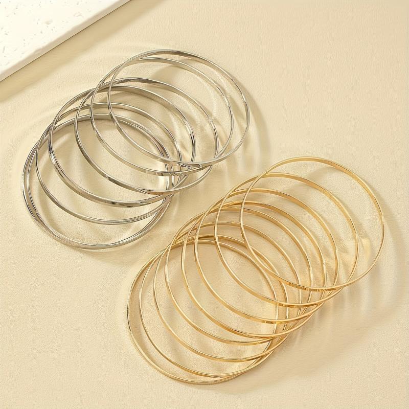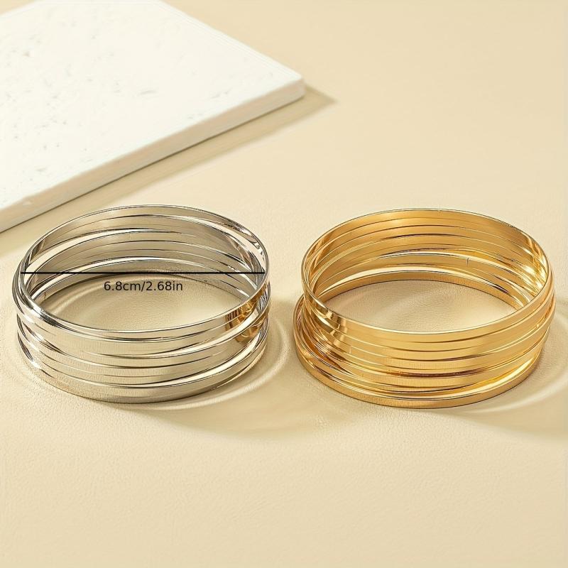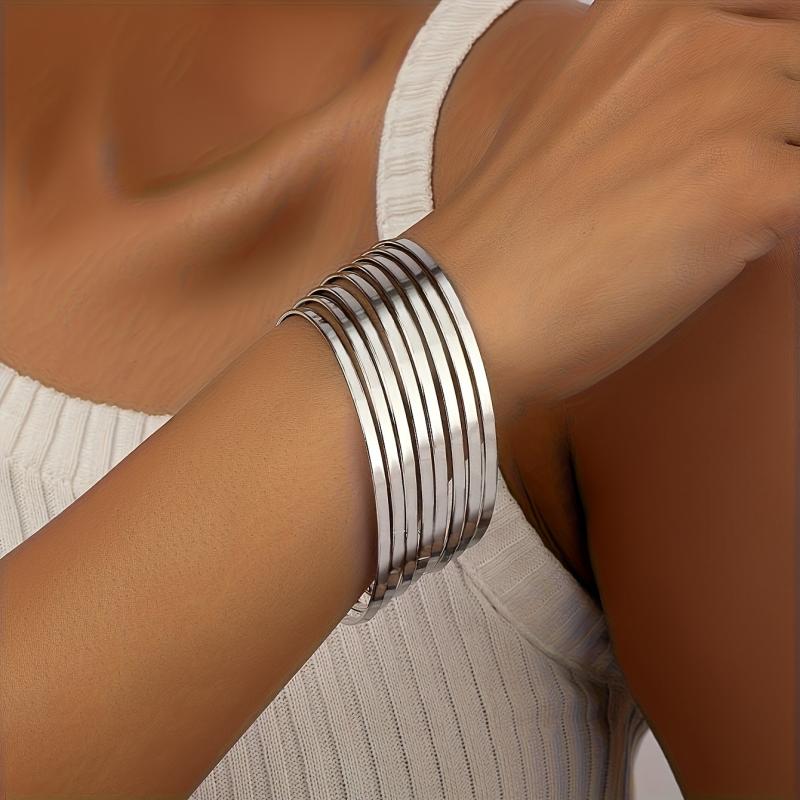 Embrace the vintage charm with this set of 8 metal bracelets that exude elegance and style.