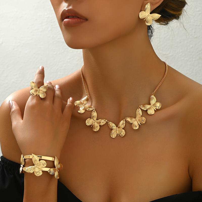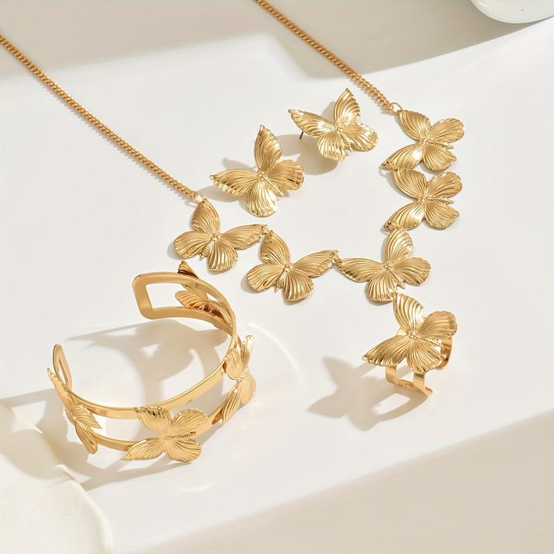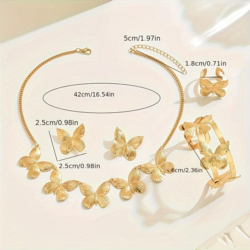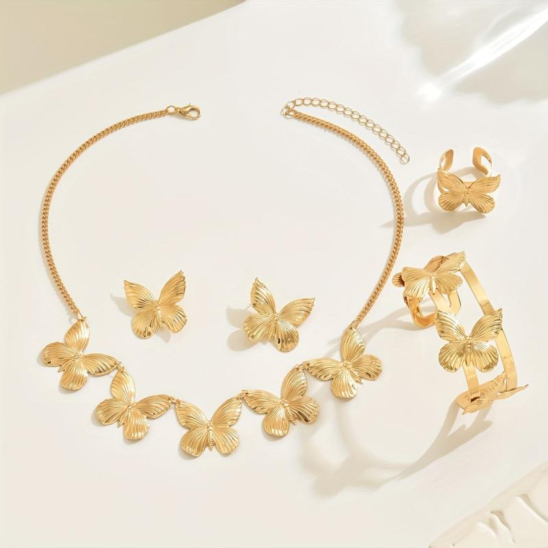 This 5-piece women's jewelry set features a vintage Middle Eastern design with butterfly openwork details. Perfect for banquets, parties, or holiday celebrations like Ramadan.