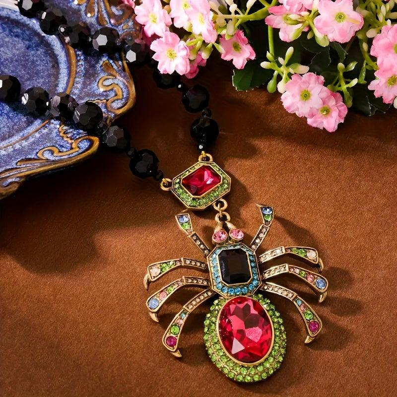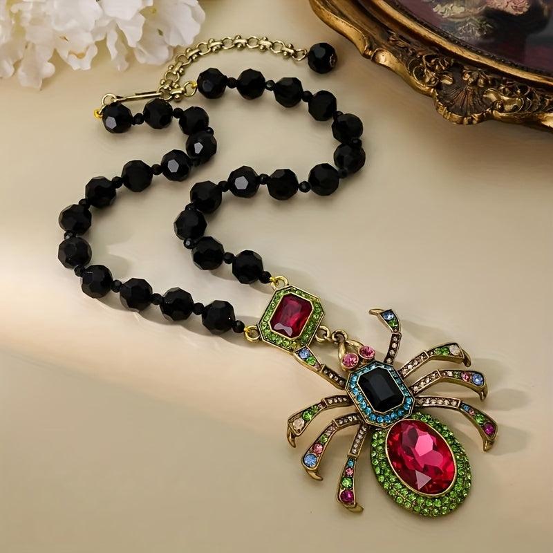 This vintage necklace features an antique golden plated alloy with synthetic gemstones and glass beads. Perfect for adding a touch of elegance to any outfit.
