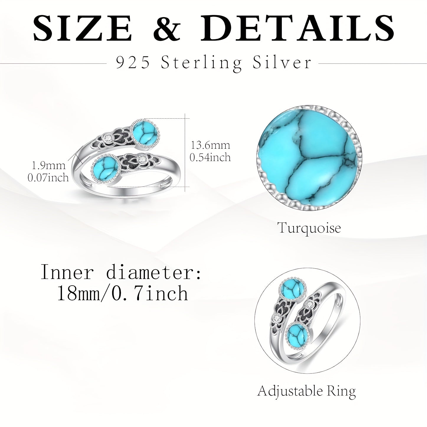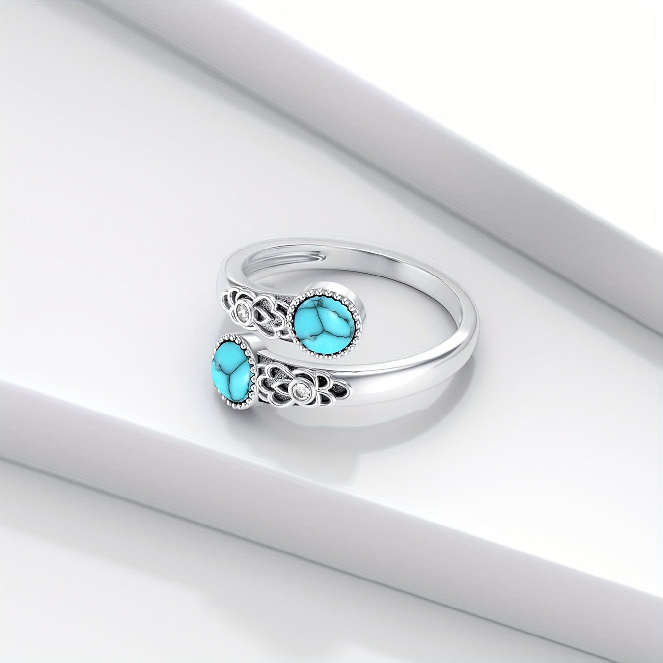 This stunning ring features two round synthetic agates and stones, set in a beautiful S925 silver pattern. The adjustable design makes it perfect for daily wear.