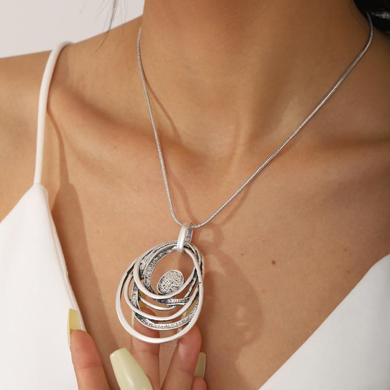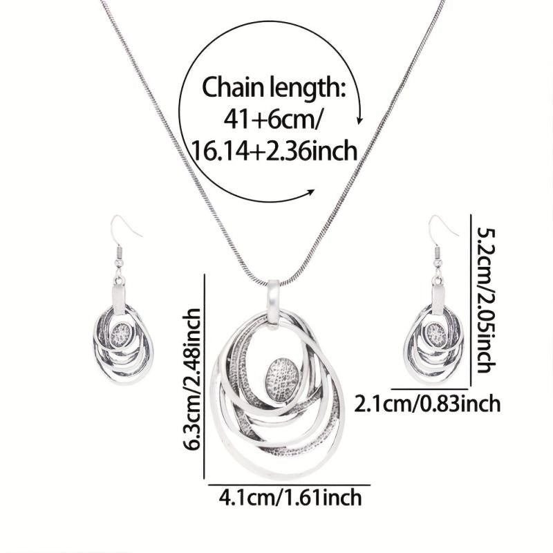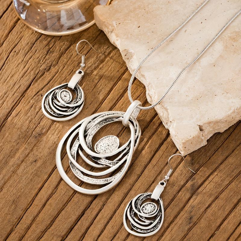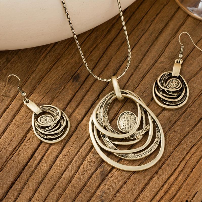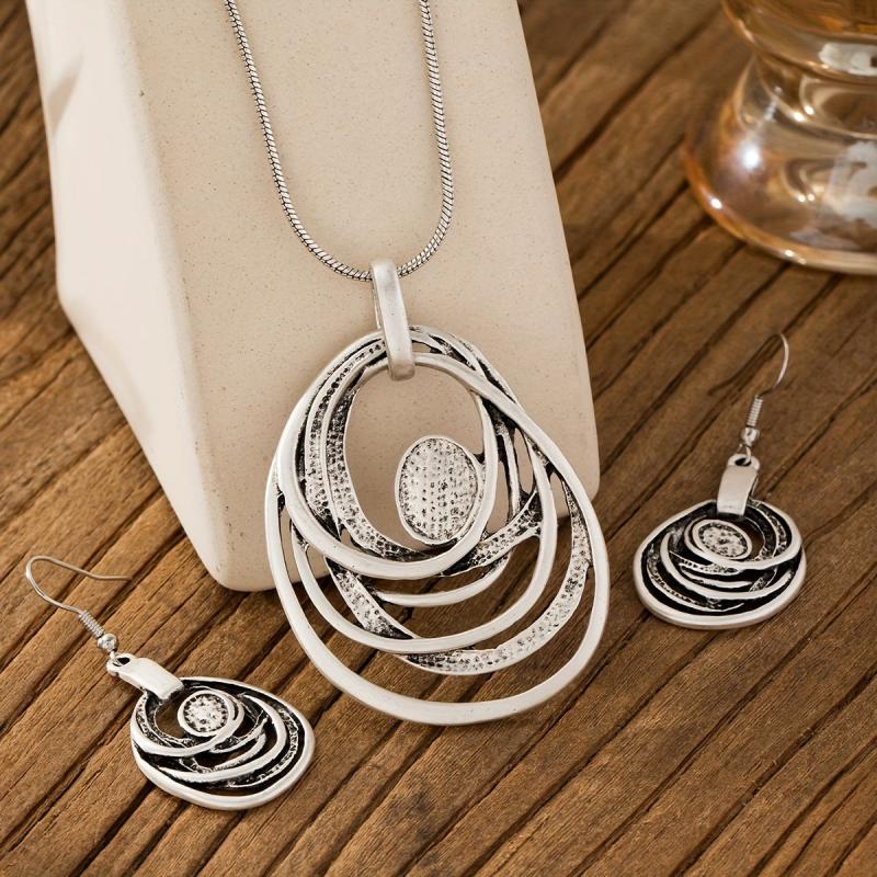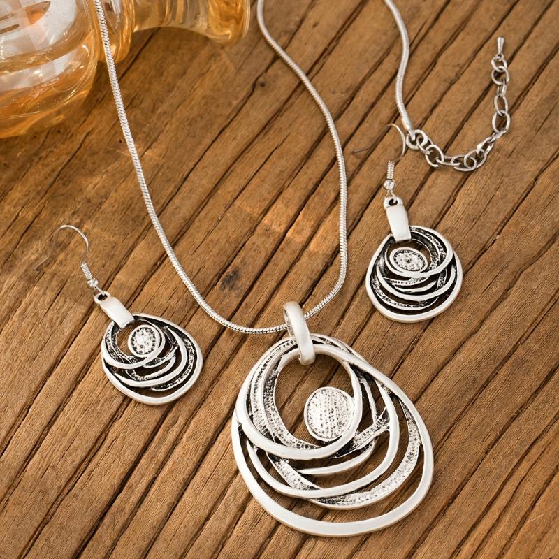 Vintage Silvery Layer Circular Geometric Jewelry Sets Bohemian Vacation Jewelry