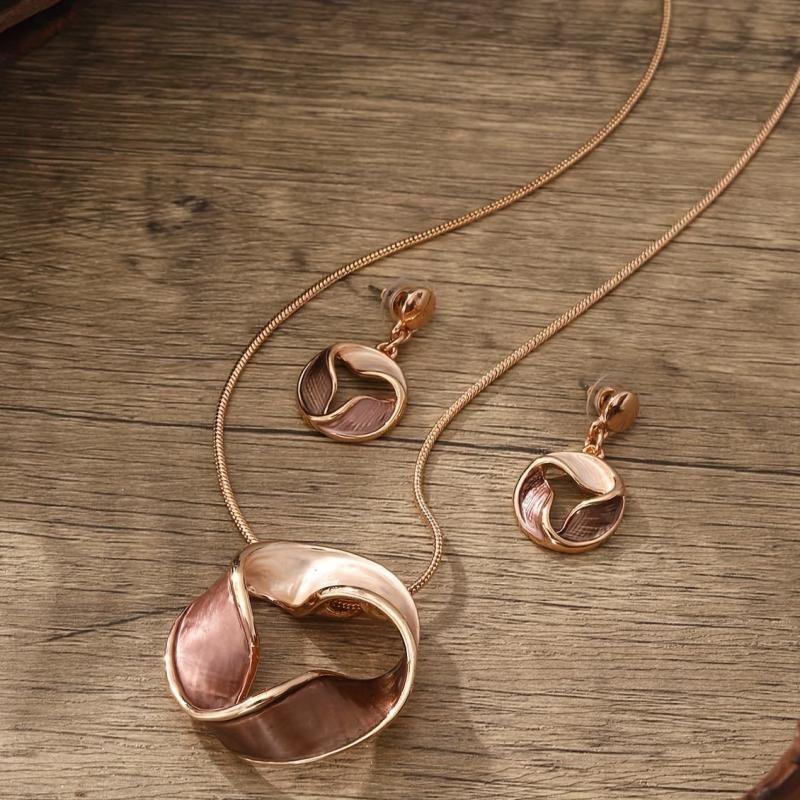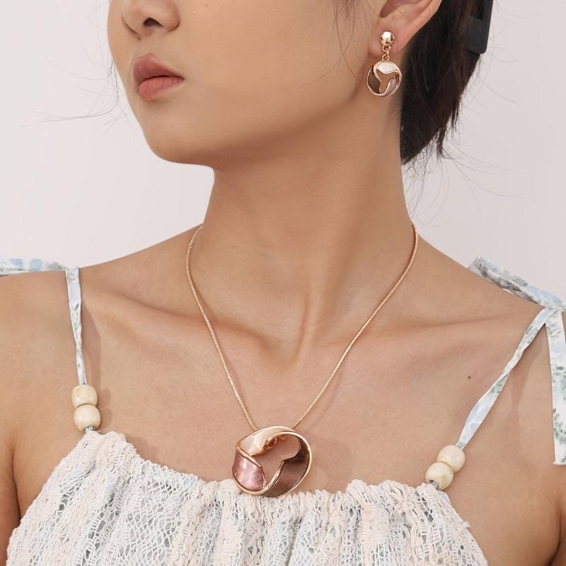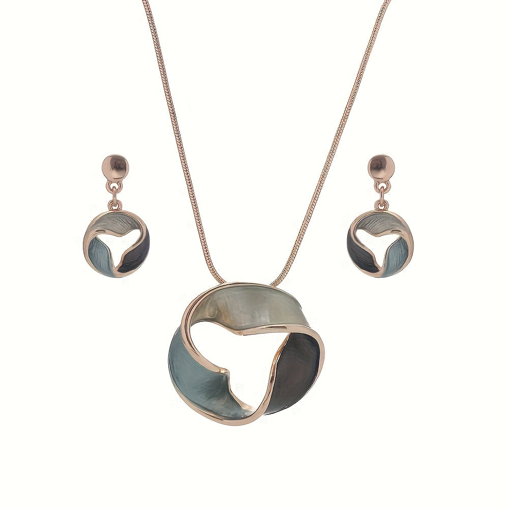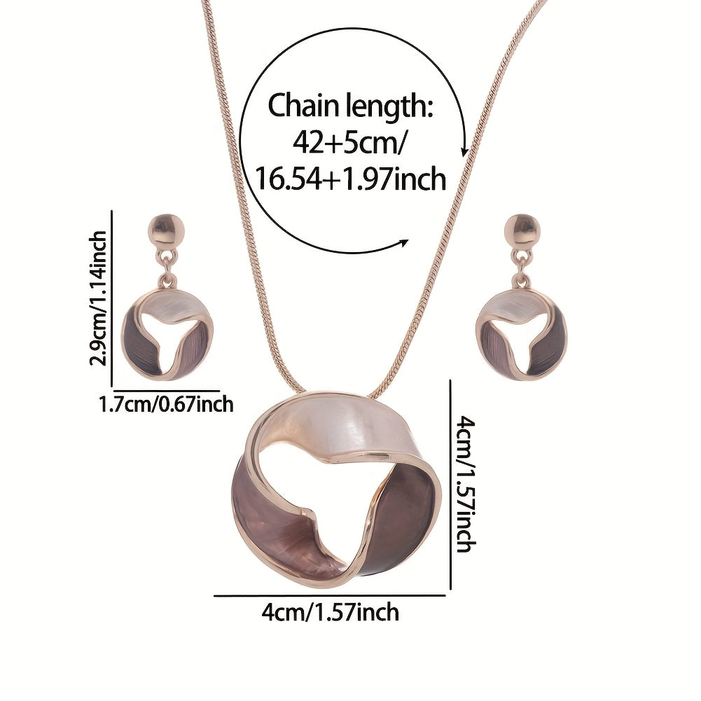 This stunning jewelry set features a round pendant necklace and matching earrings with hand enamel detailing. Ideal for parties or casual attire, this set is a perfect addition to any outfit!