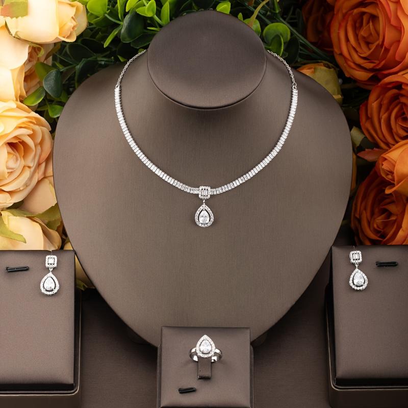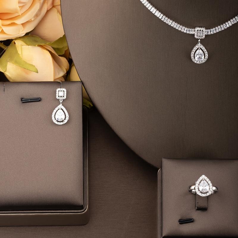 Make a statement with this vintage-style jewelry set featuring intricate lace design inlaid with sparkling cubic zirconia. Suitable for banquets and celebrations.