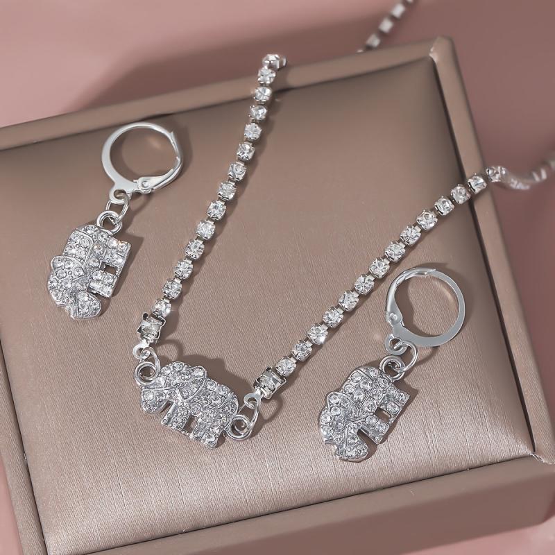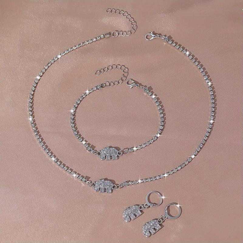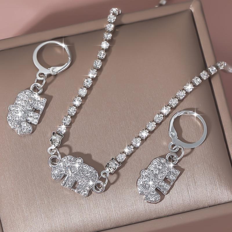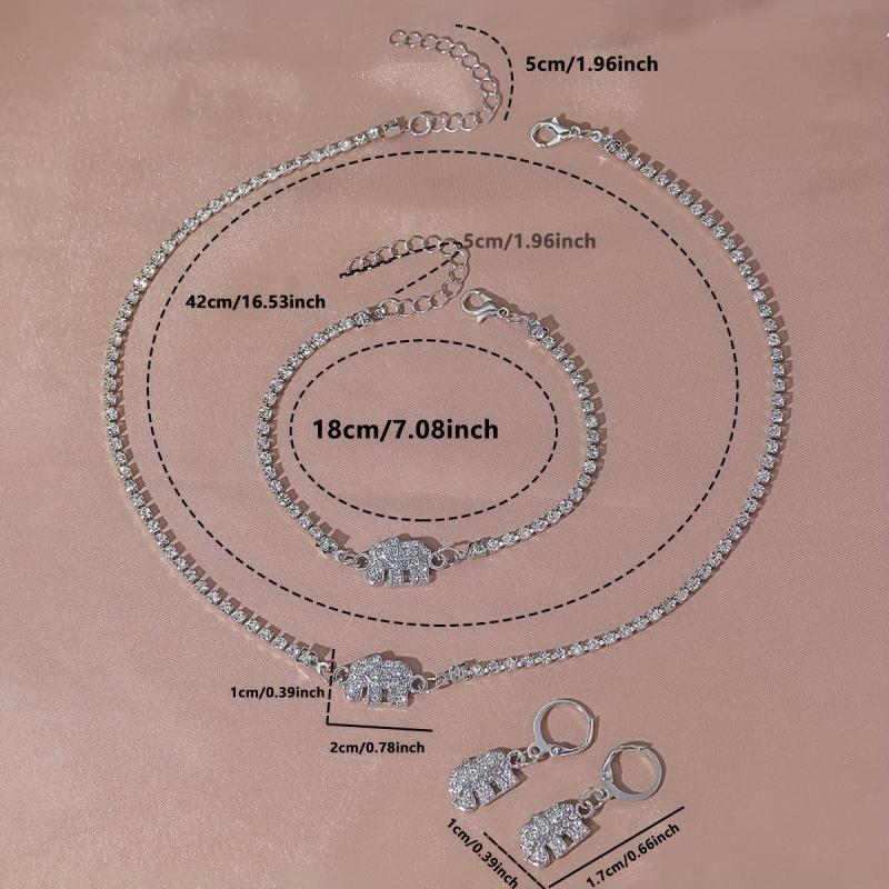 This 4-piece jewelry set includes a bracelet, earrings, and necklace. It is perfect for adding a stylish touch to any outfit and makes a great gift for women.