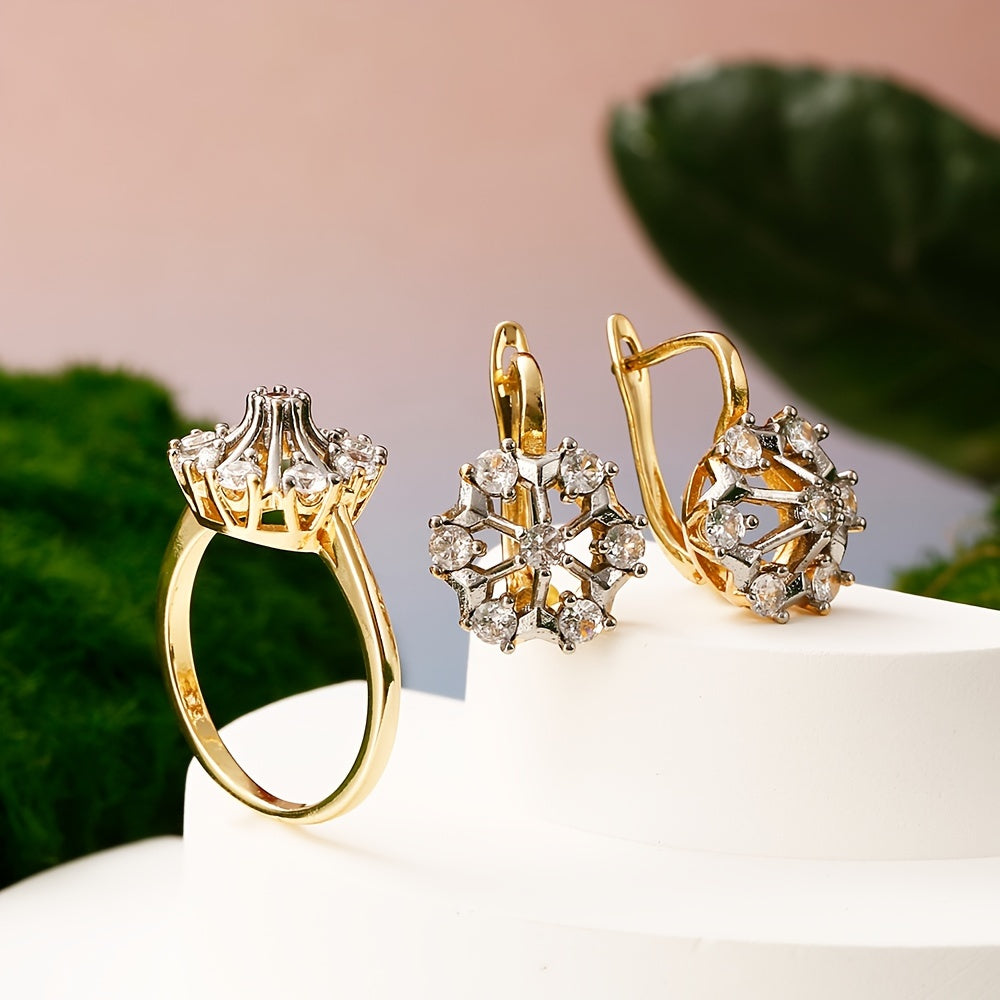 Women's Jewelry Set Hollow Floral 14K Plated Copper with Synthetic Zircon