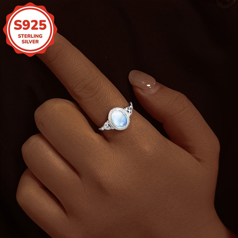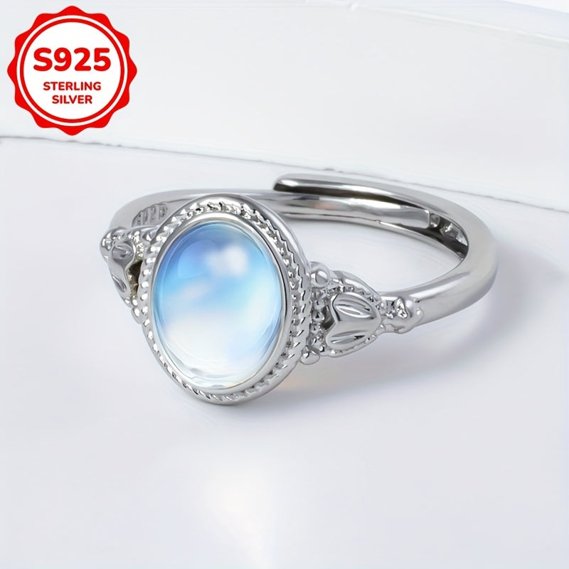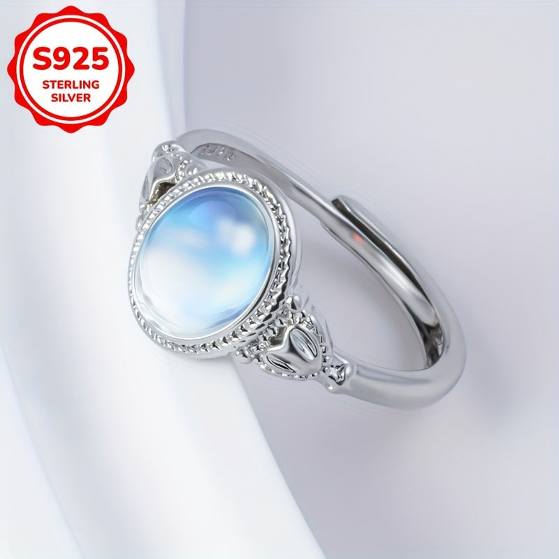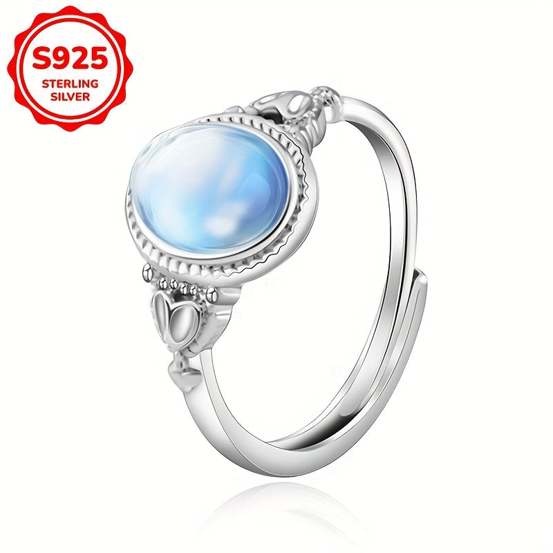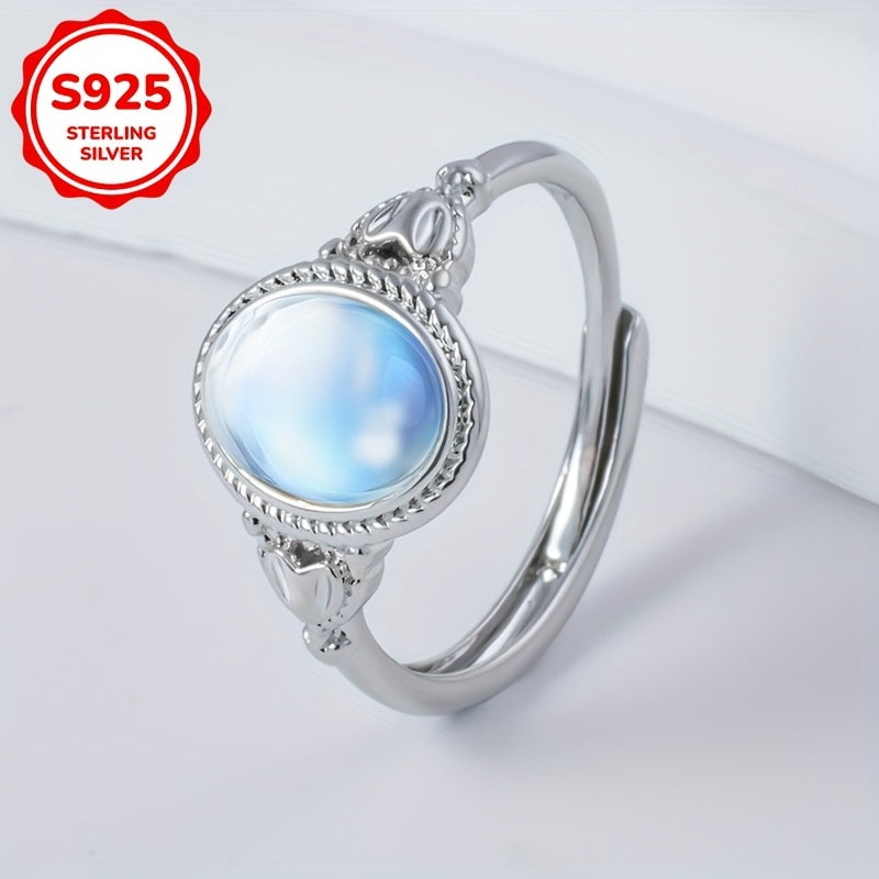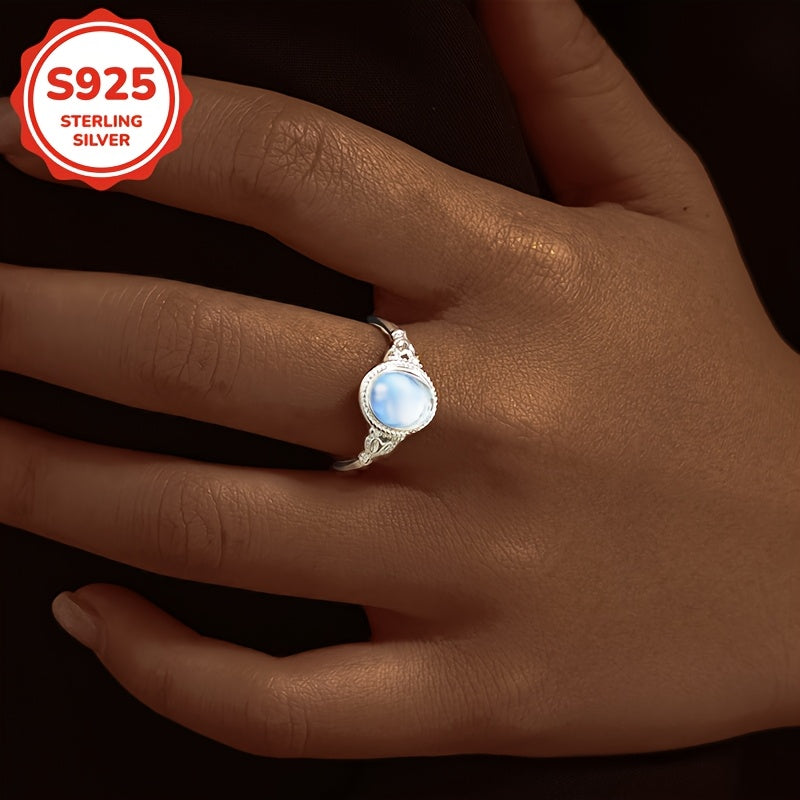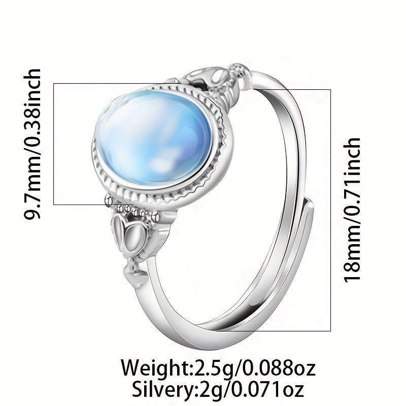 Elegant and charming ring featuring a synthetic moonstone inlay set in 925 silver. Ideal for daily wear, vacations, parties, and as a holiday gift.