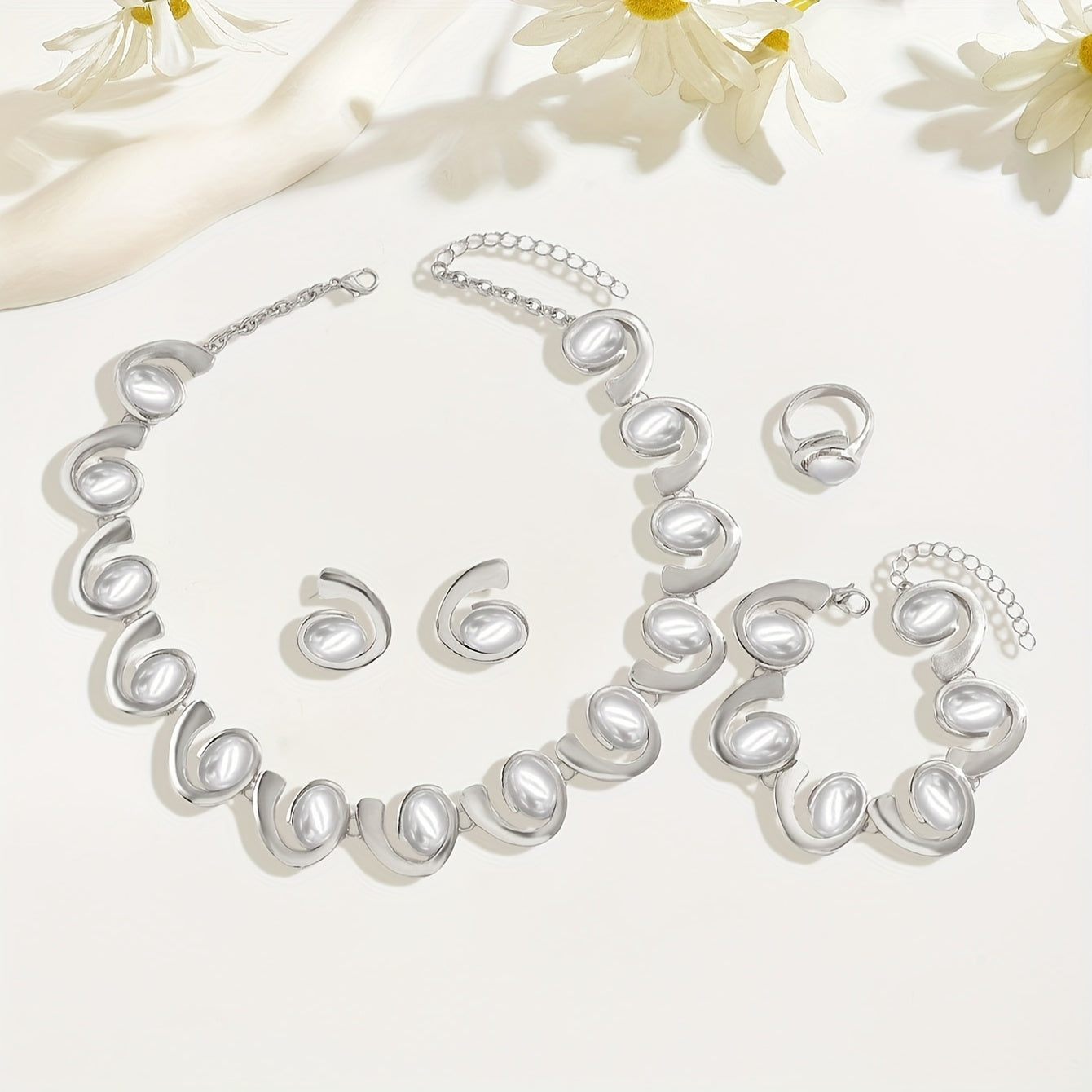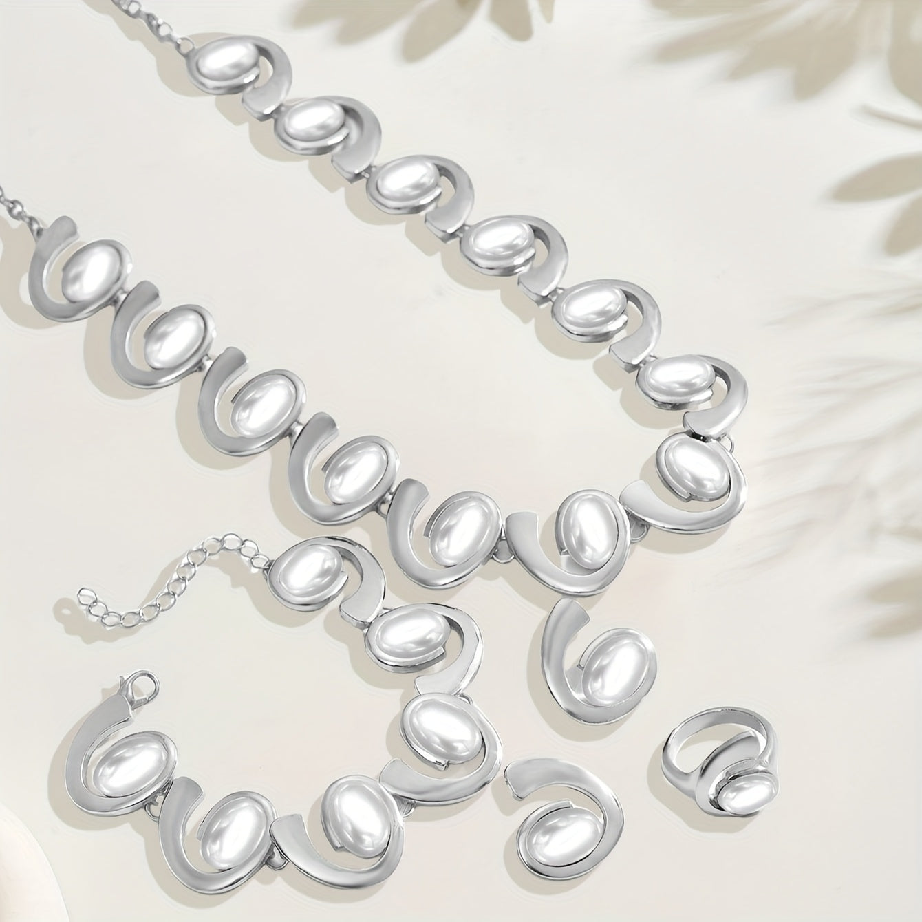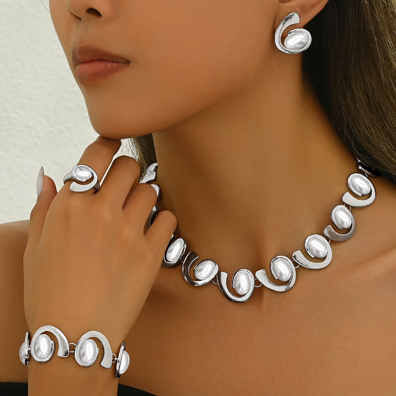 Women's Silvery 3D Geometric Spiral Arrangement Jewelry Set