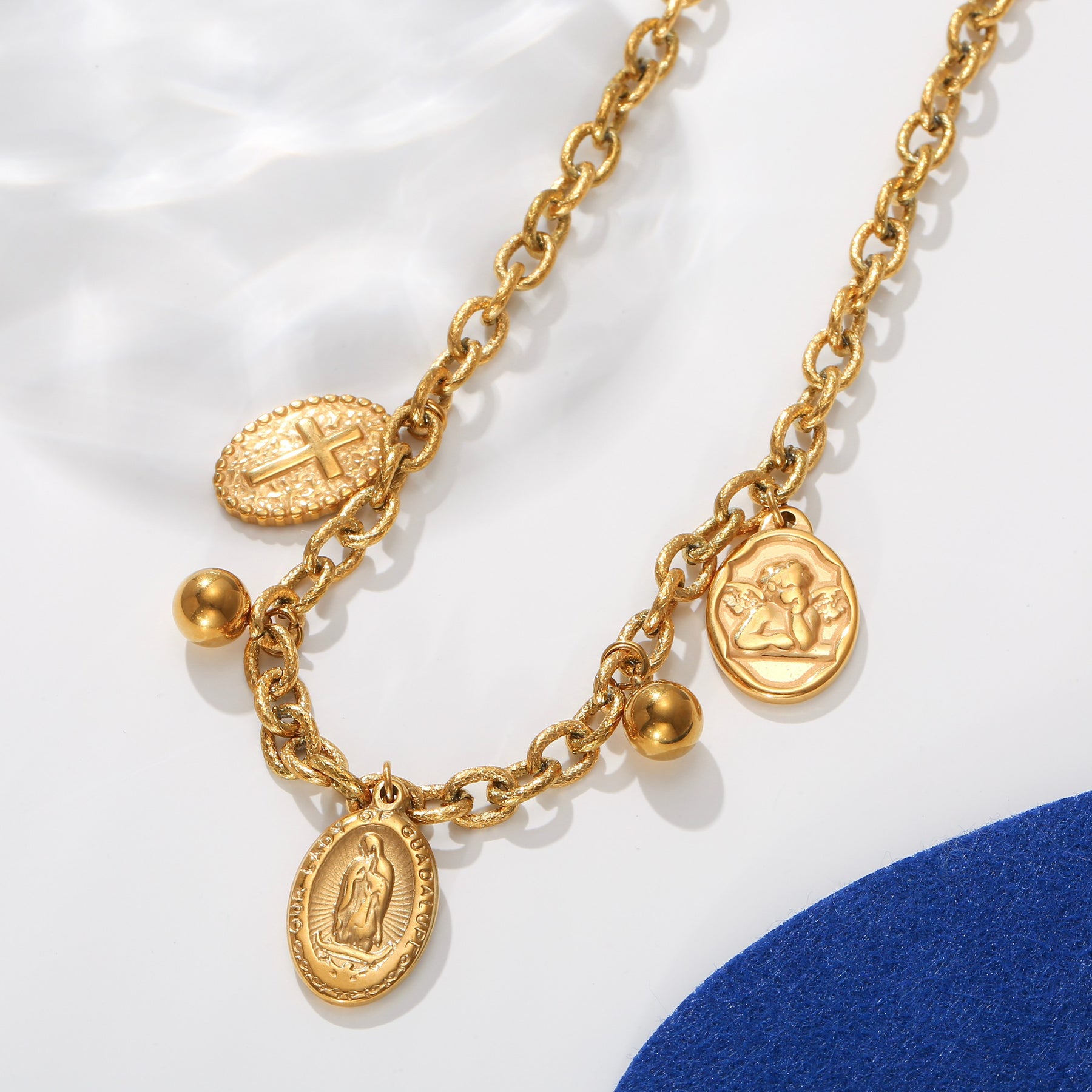 Women'S Stainless Steel Necklace Cross Angel Charms Hypoallergenic