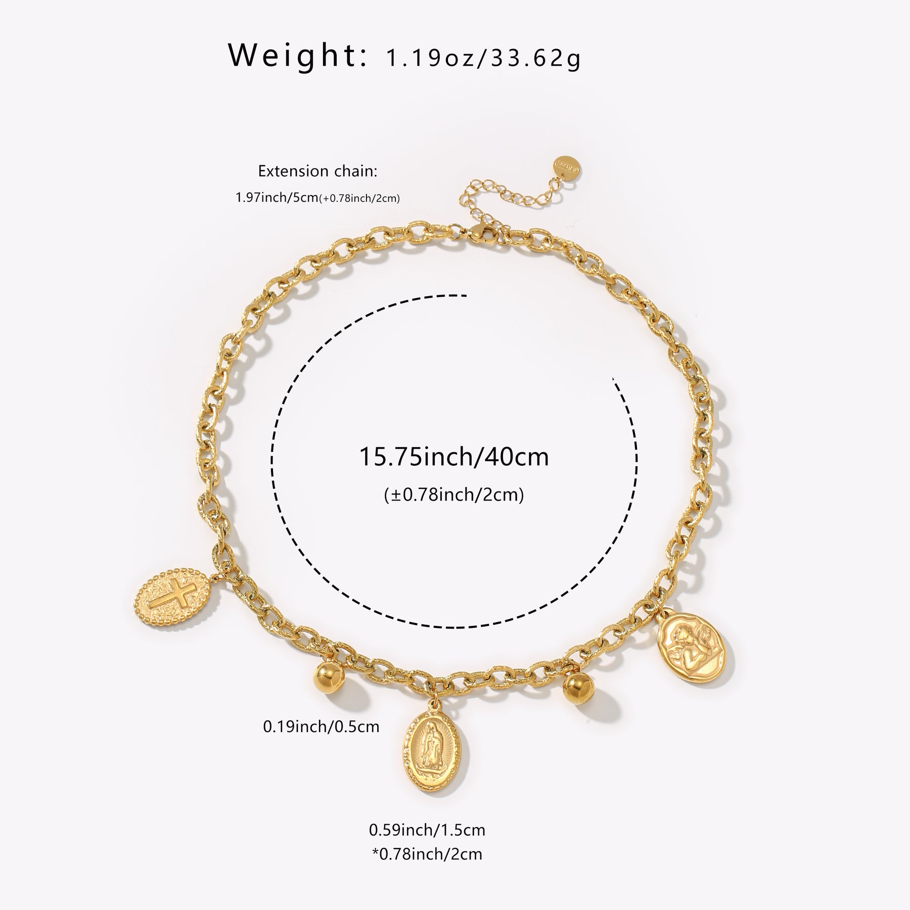 This stainless steel necklace with cross and angel charms is a versatile accessory suitable for daily wear, street style, vacations, and as a Valentine's gift. It is hypoallergenic and perfect for all seasons.