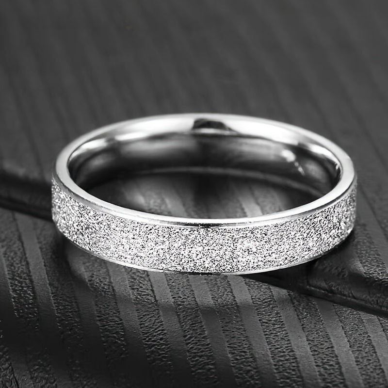 This 4mm titanium steel ring for women is frosted, fade resistant, washable, and suitable for both outdoor and indoor wear. It's a perfect anniversary gift and everyday accessory.