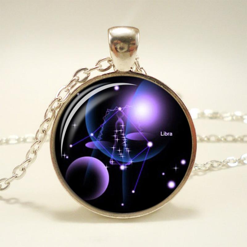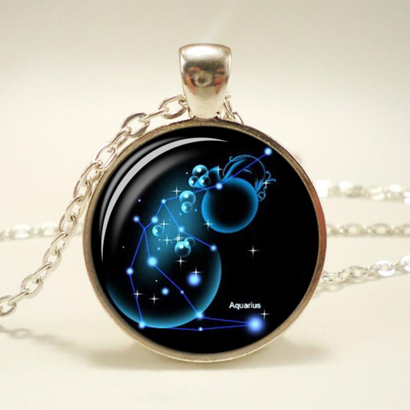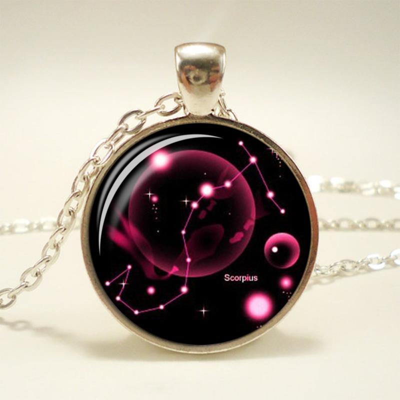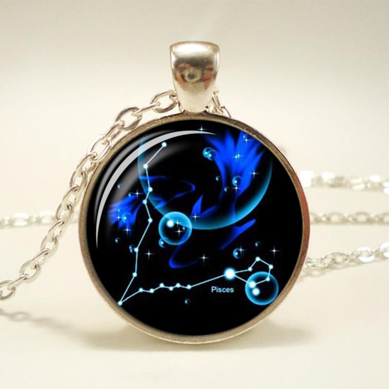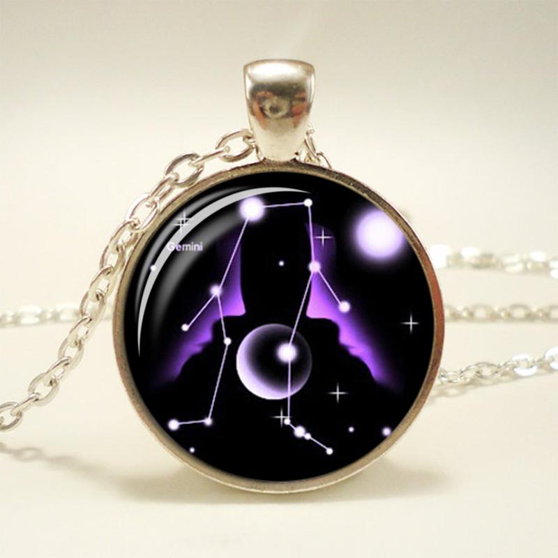 Zodiac Constellations Pendants Necklaces Glass Men Jewelry Birthday