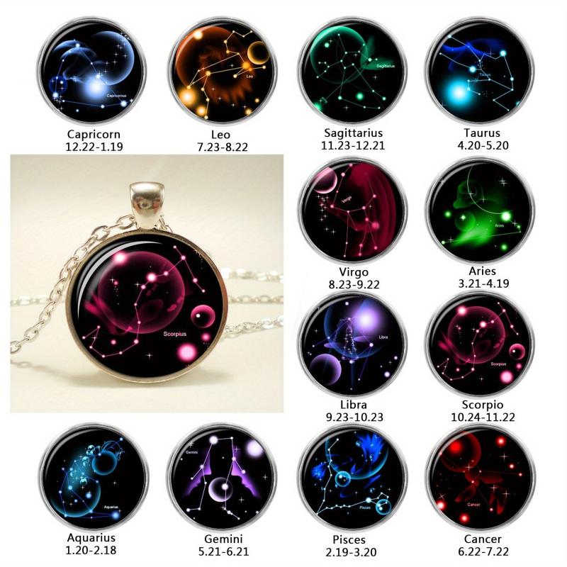 This pendant necklace features the 12 zodiac constellations in a round glass design, making it a perfect birthday gift for both women and men.