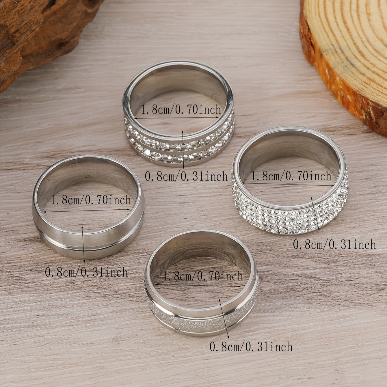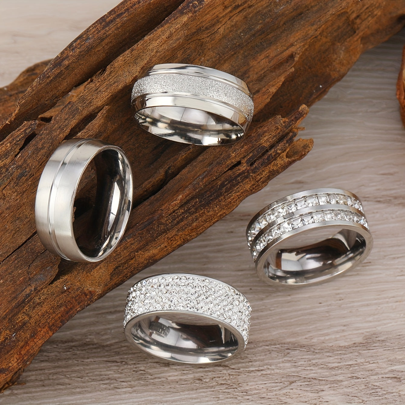 This 4-piece set features durable and fast men's rings designed with water crystal inlays and stainless steel construction. Perfect for gifting or adding a stylish accessory to your outfit.