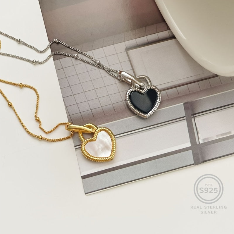 925 Silvery Onyx Love Pendant Necklace for Men and Women