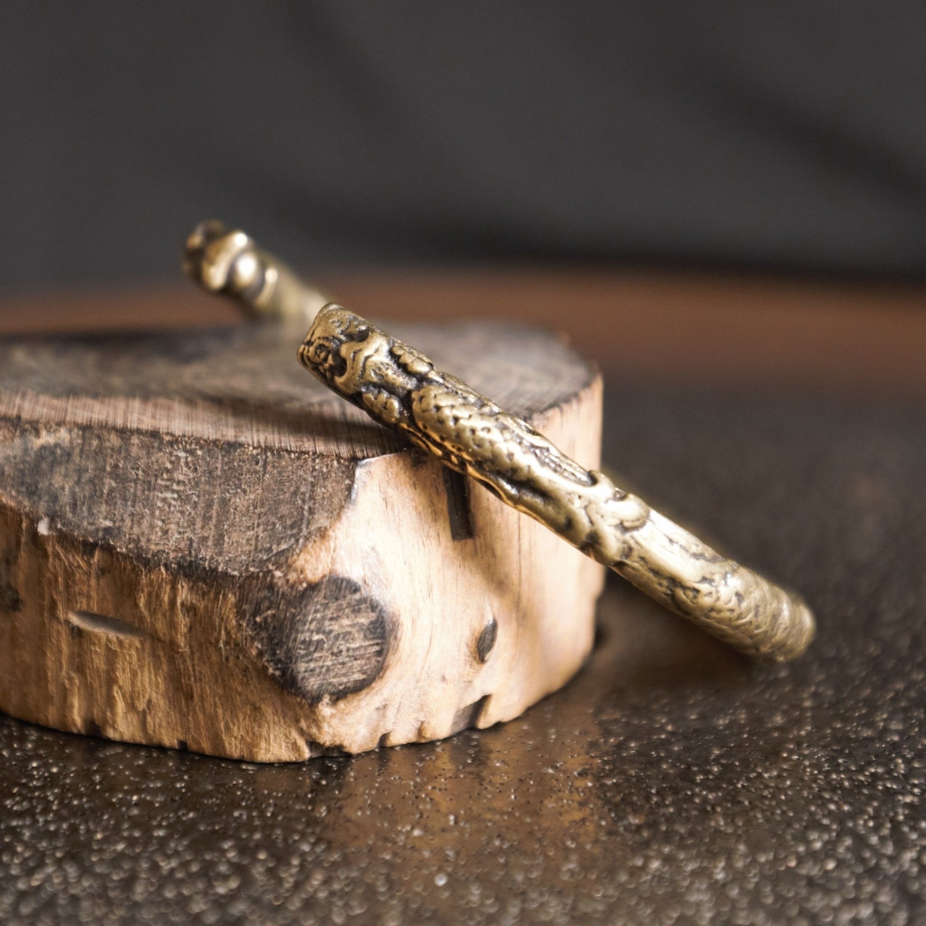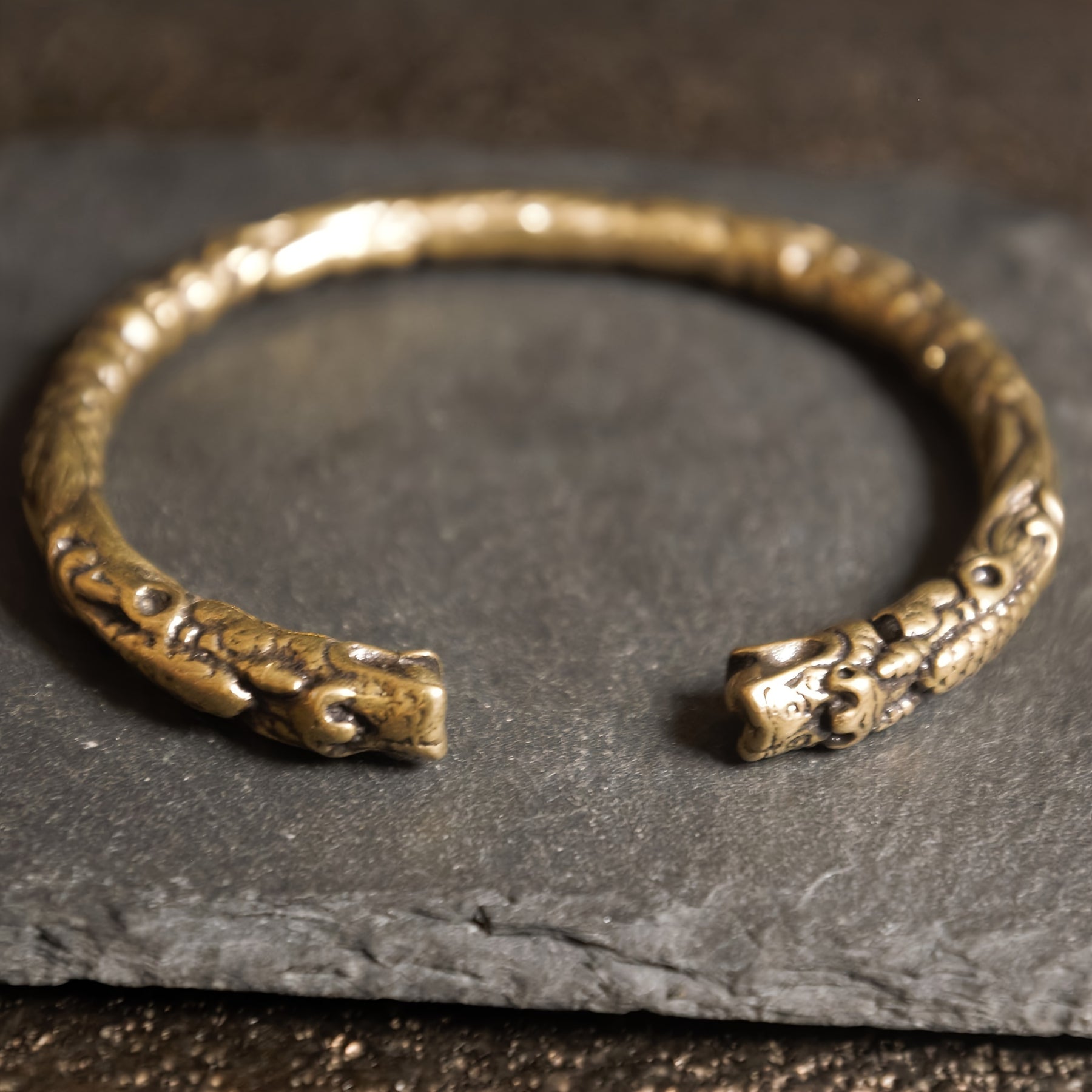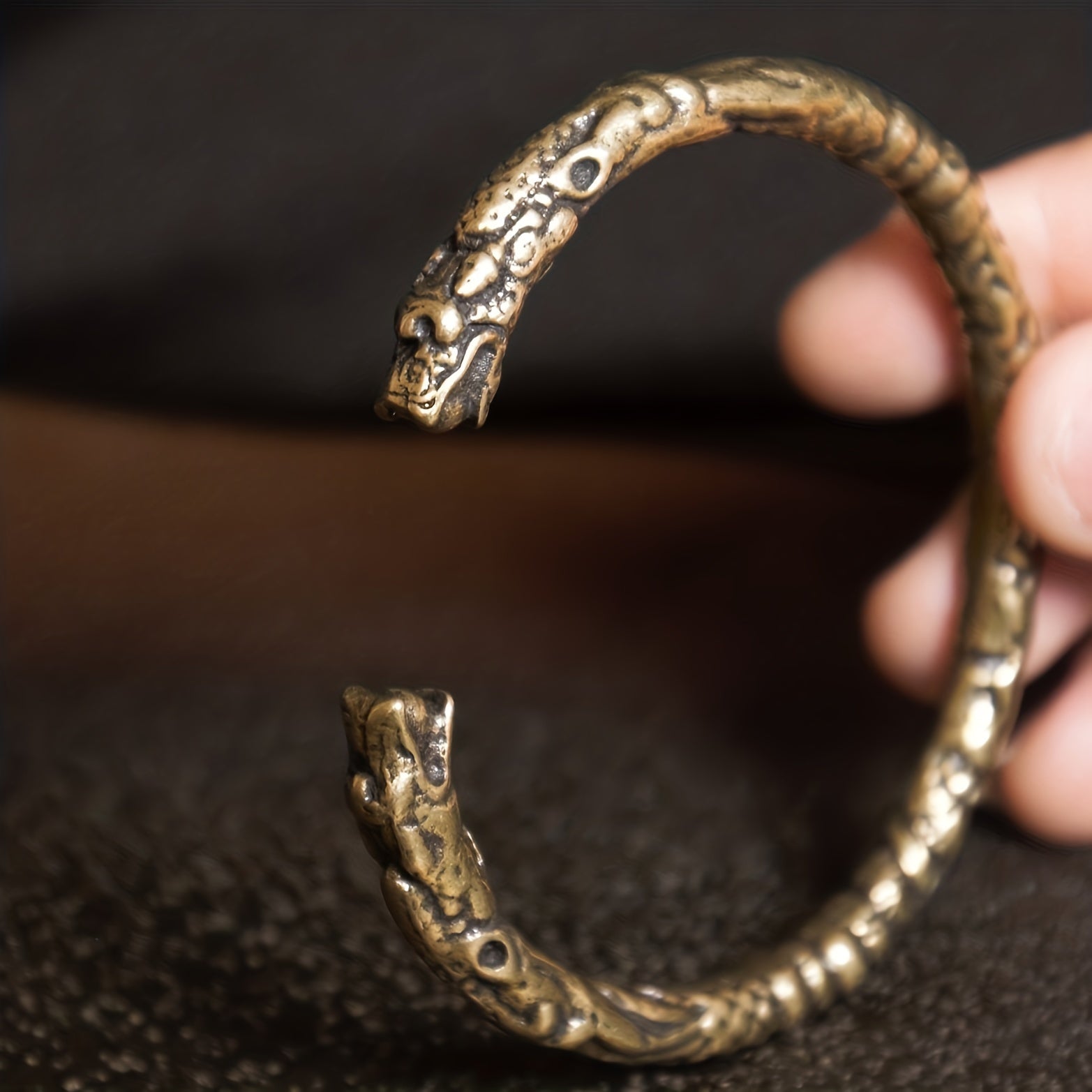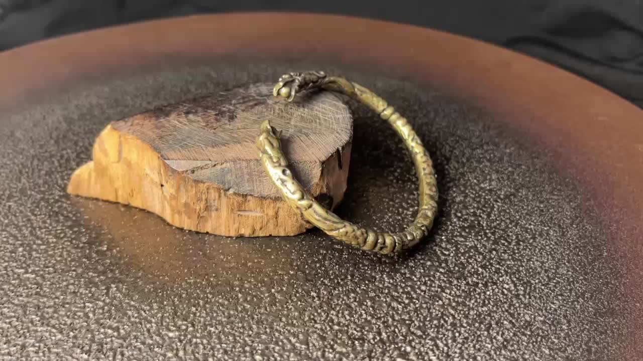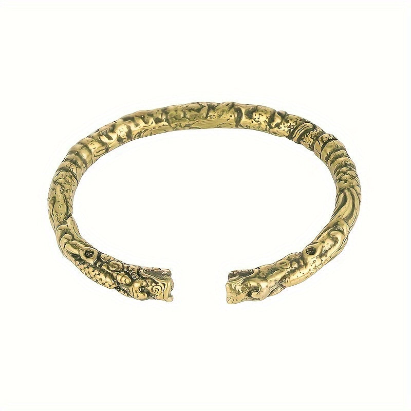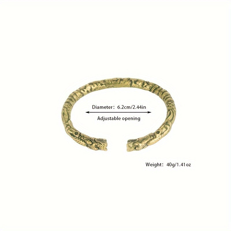 Adjustable Brass Dragon Head Cuff Bangle Vintage Gothic Style Intricate P