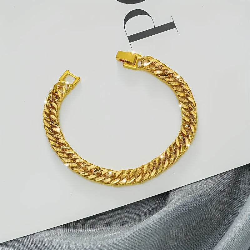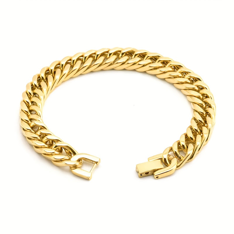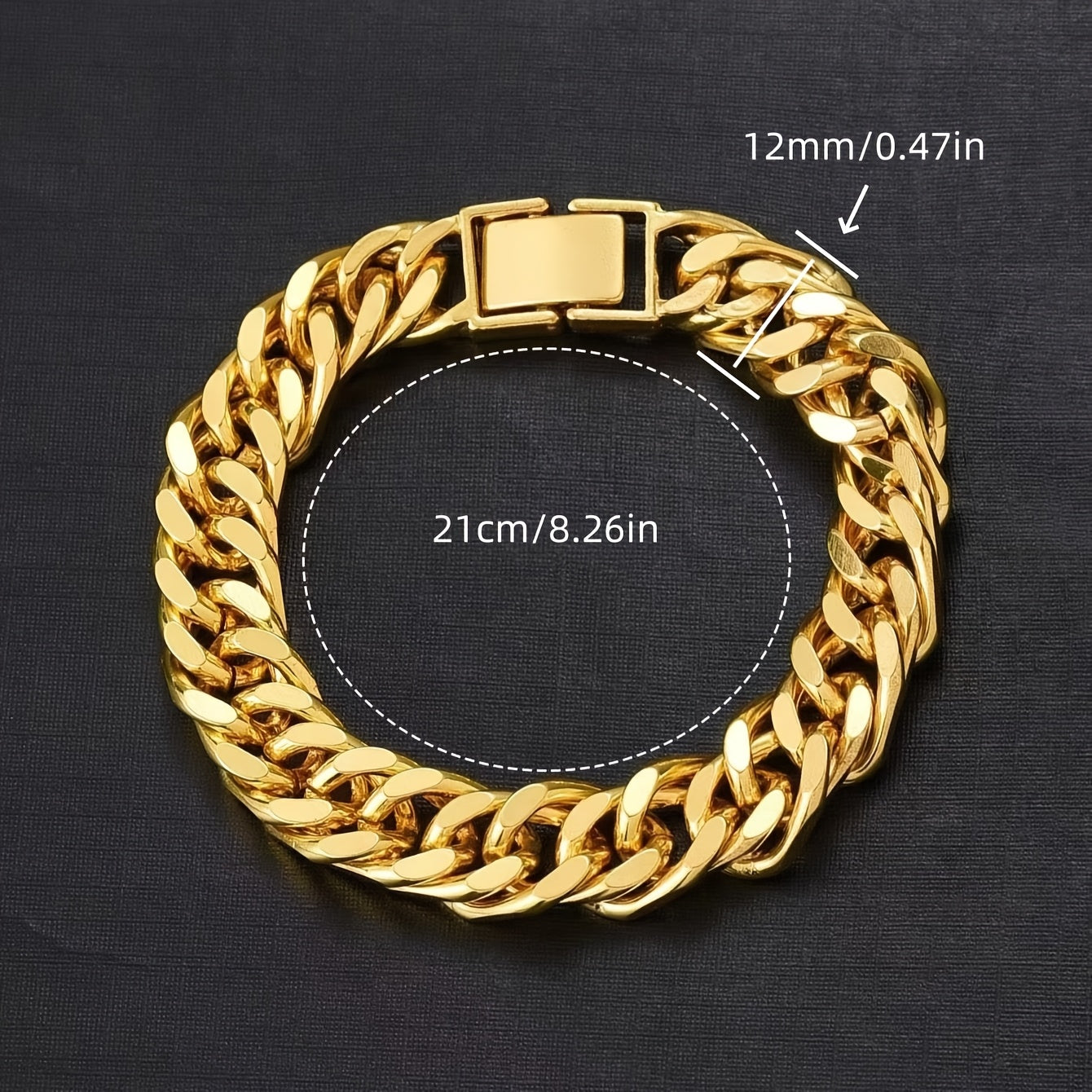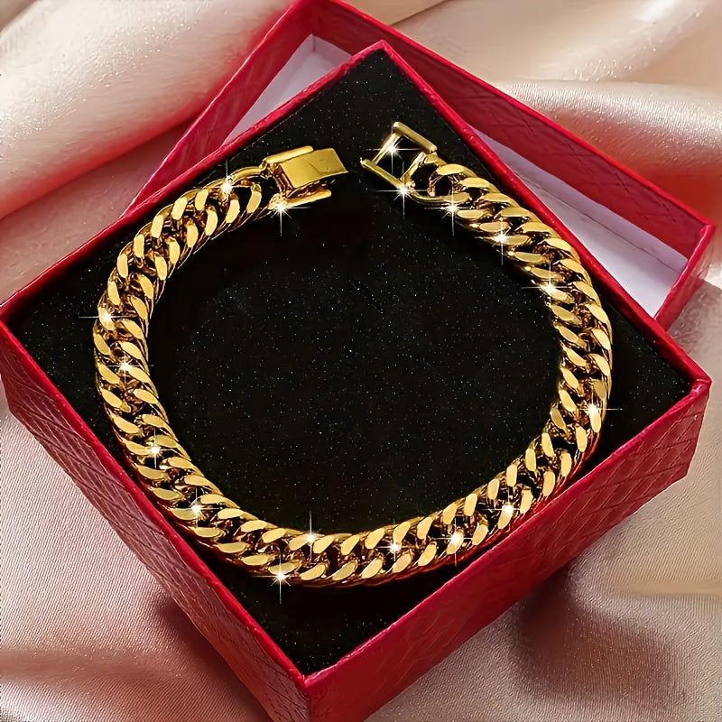 This Cuban link bracelet is a perfect accessory for daily wear, parties, and music festivals. It features a non-magnetic iron construction and comes with a box for storage.