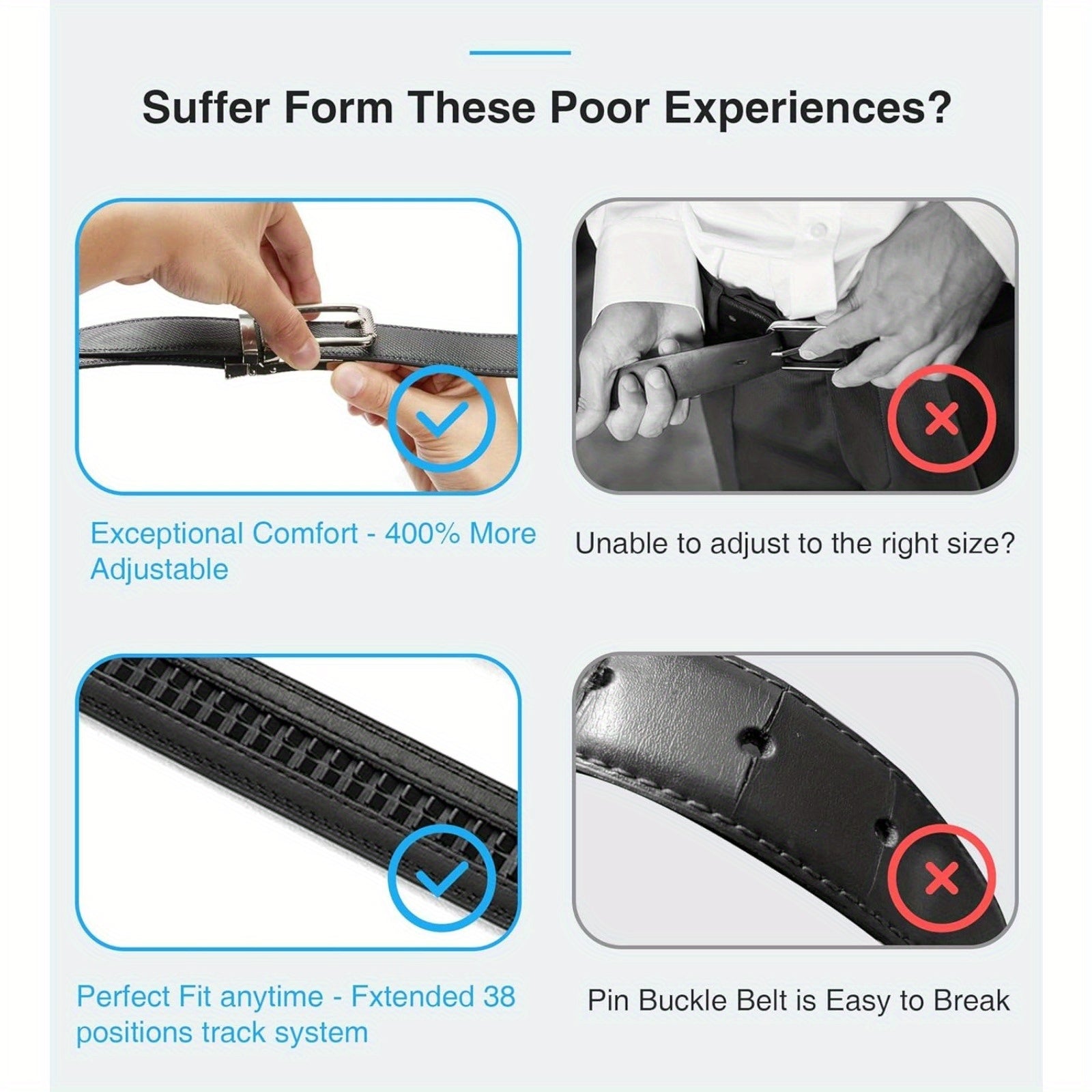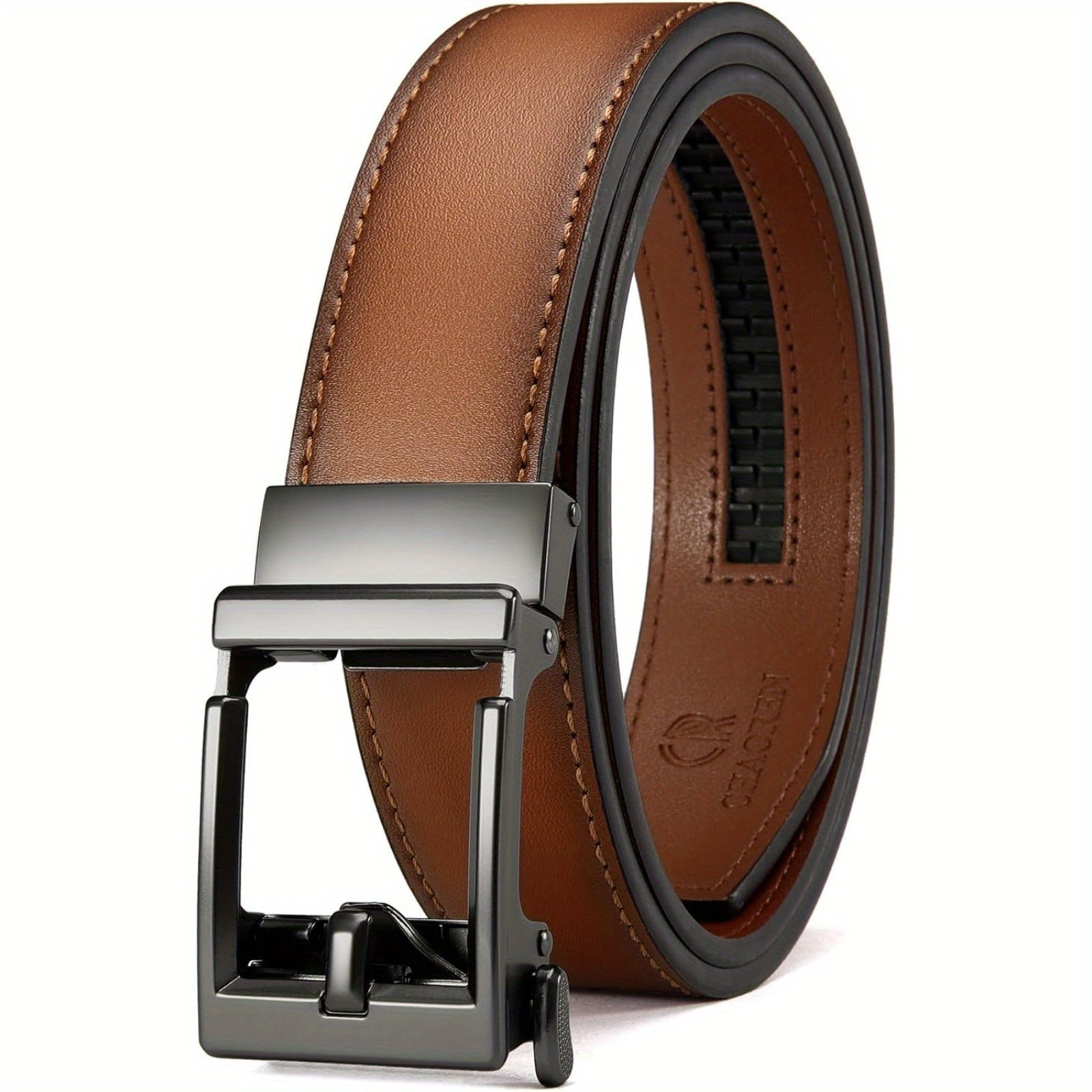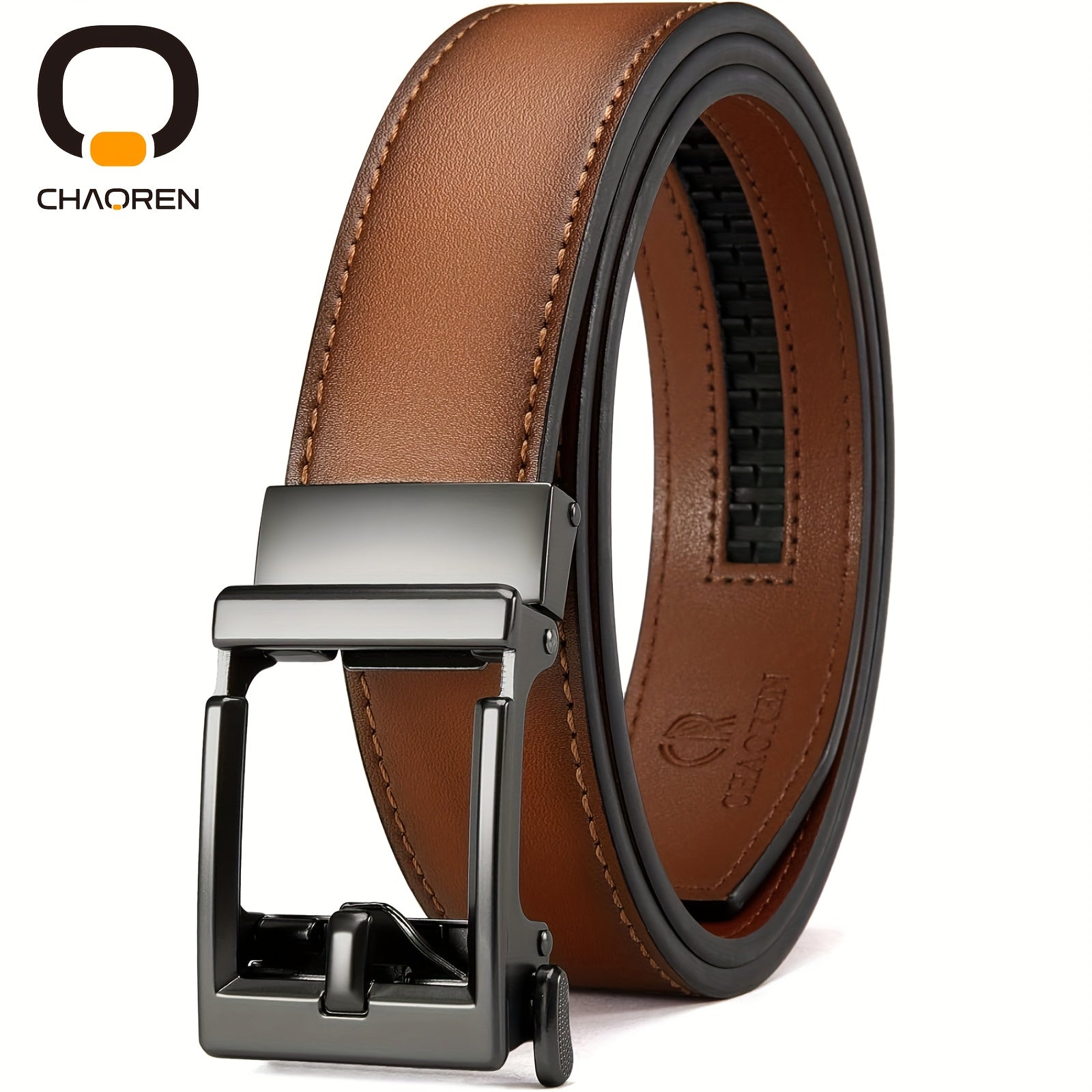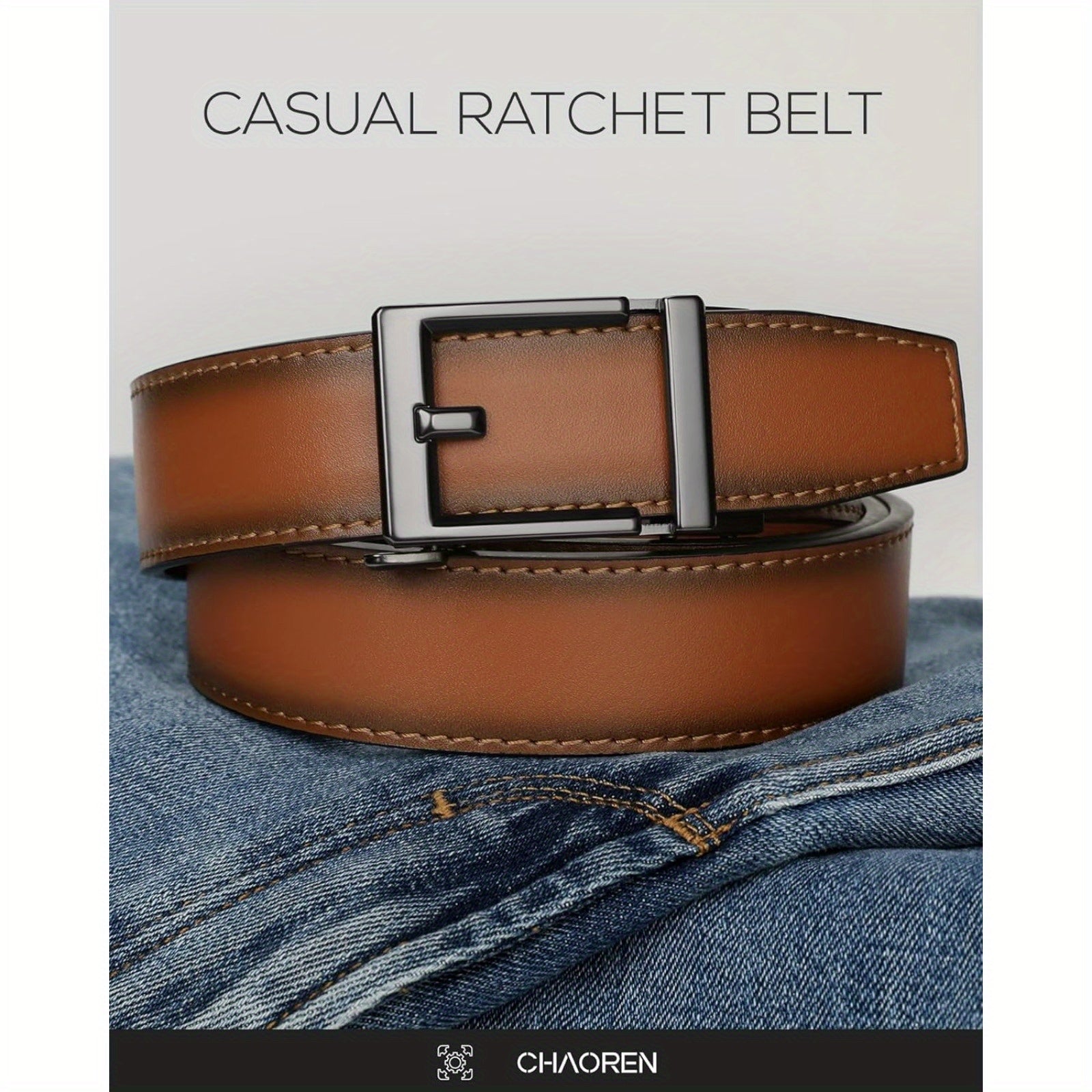 Upgrade your style with this CHAOREN ratchet belt for men. Made of faux leather, this belt is 1 1/3 inches wide and features micro adjustable ratchet technology for the perfect fit everywhere.