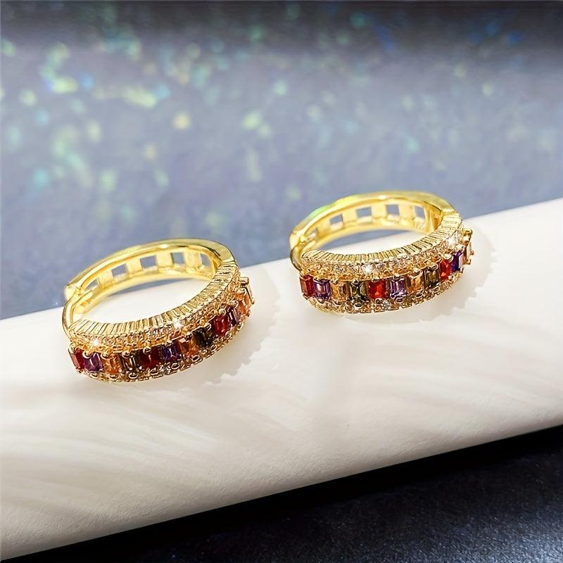 Add a pop of color to your look with these stylish hoop earrings featuring vibrant cubic zirconia stones. Perfect for daily wear or special occasions.