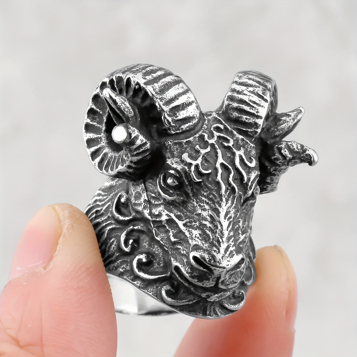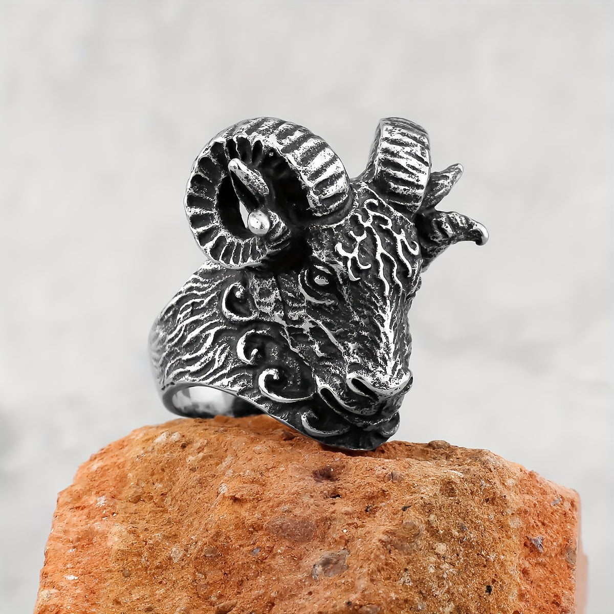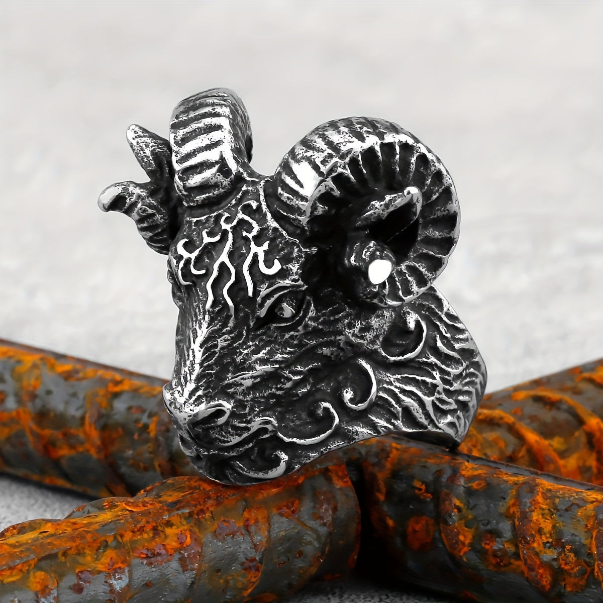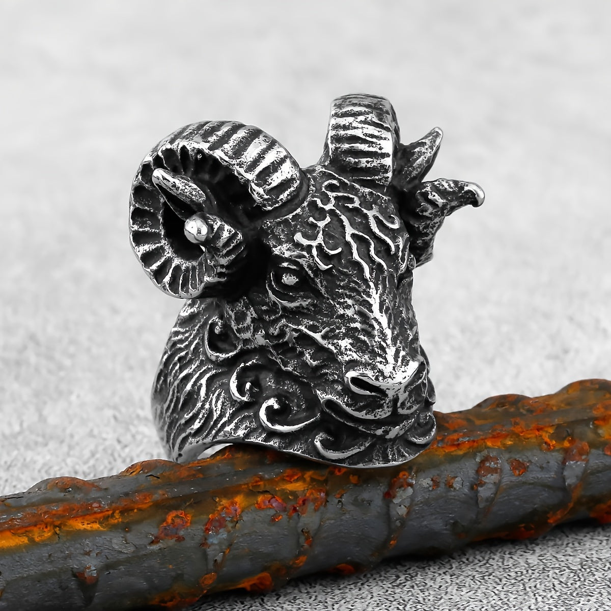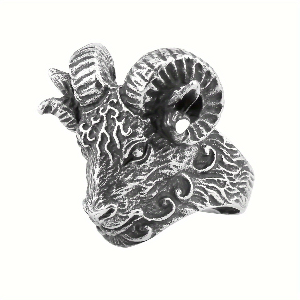 Dark Gothic Goat Head Animal Ring Stainless Steel Men&
