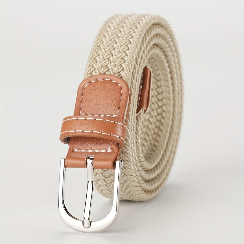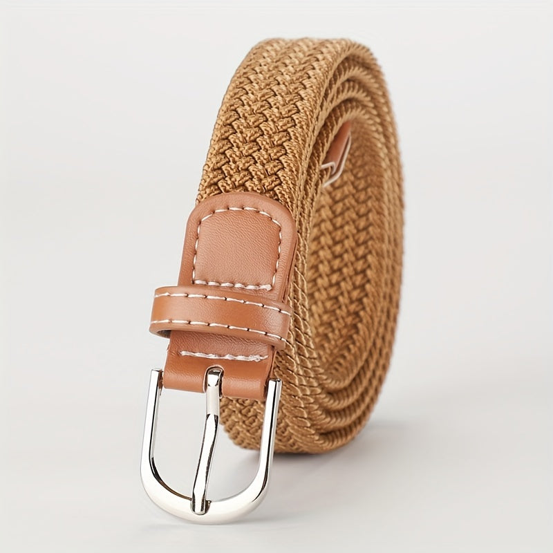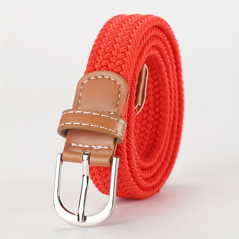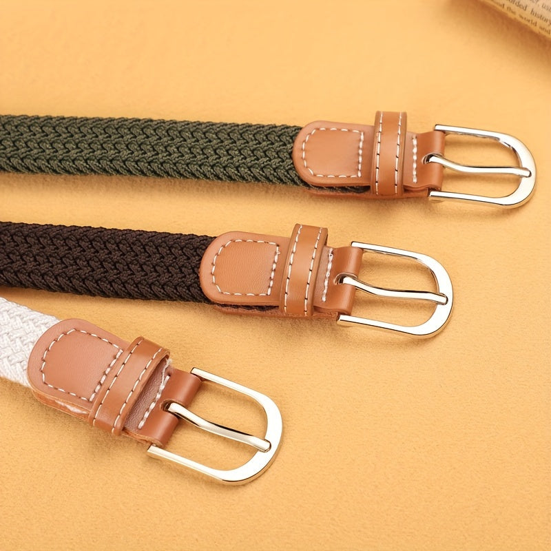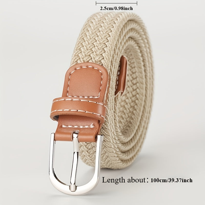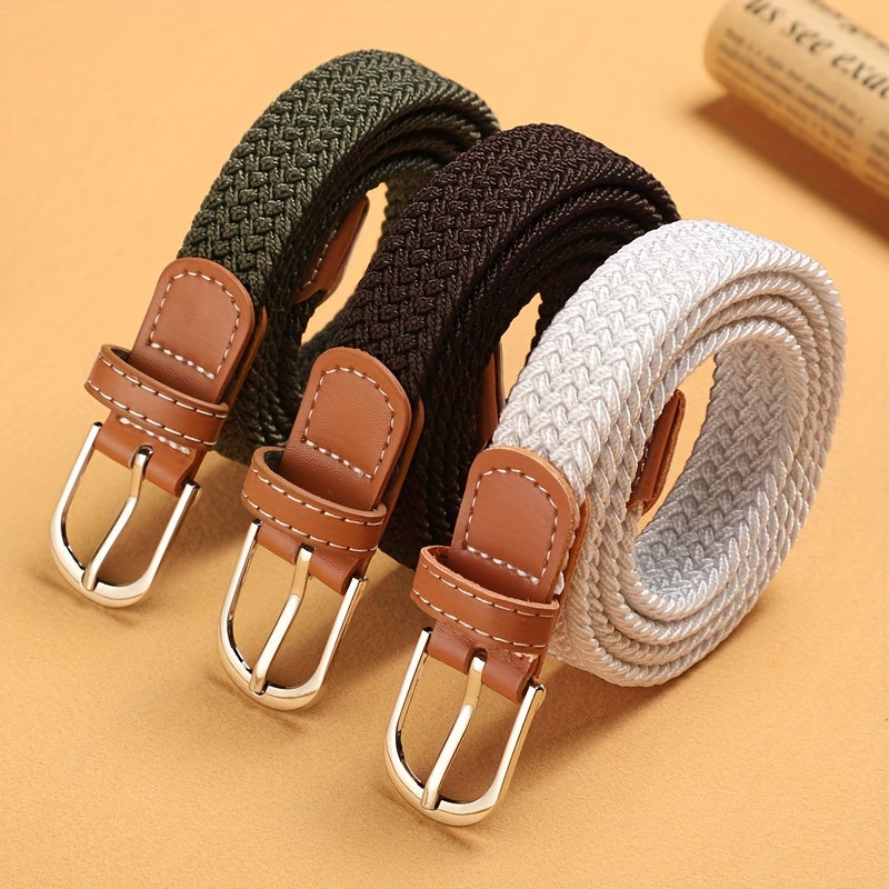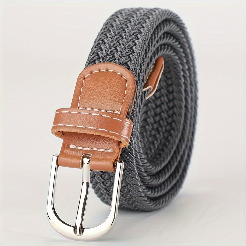Upgrade your casual look with this versatile elastic canvas waistband belt. Features a sturdy metal buckle and no hole design for a comfortable fit.