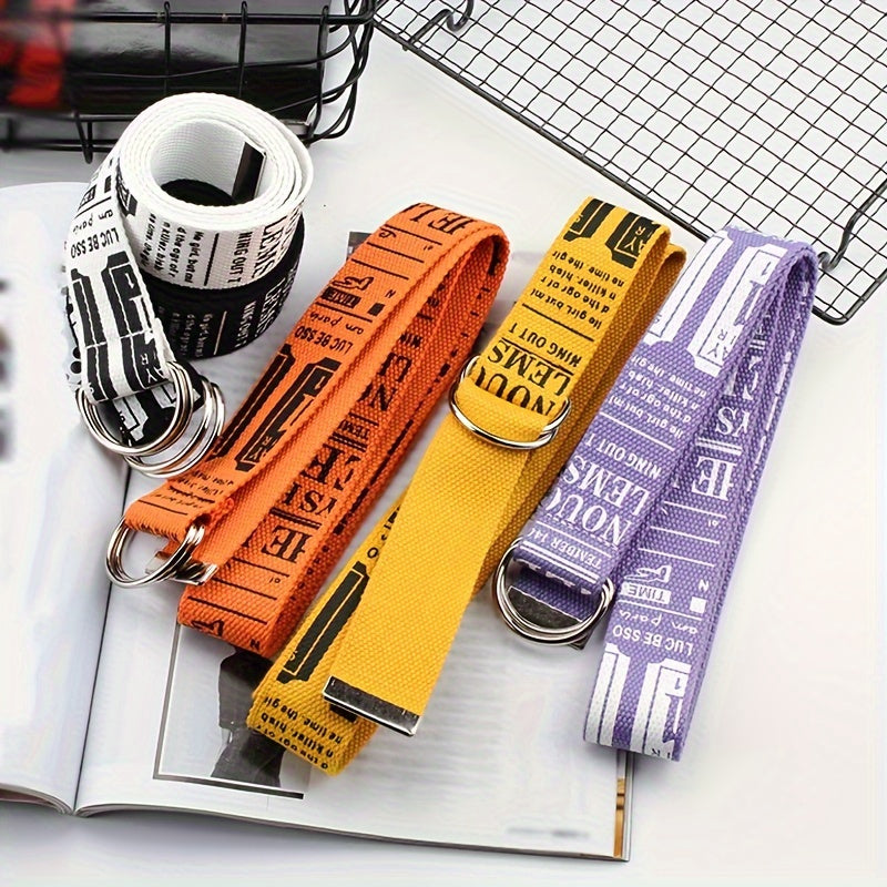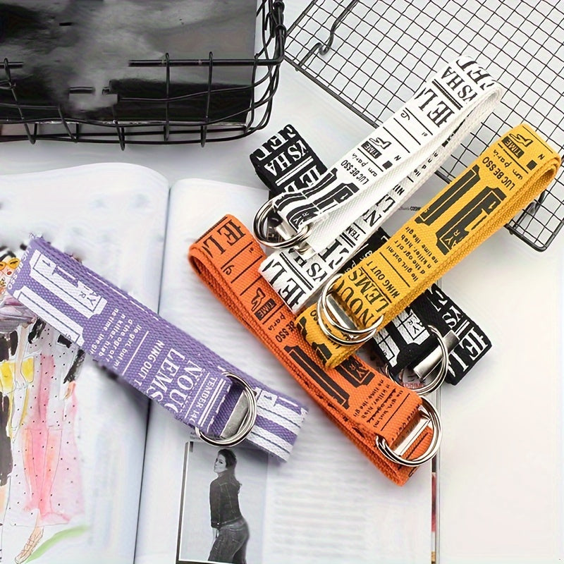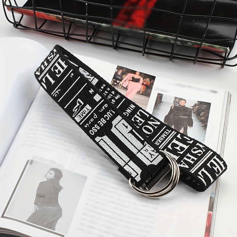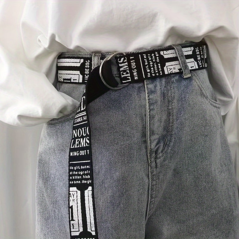 This hip hop street style canvas belt is decorated with alphabets, making it a perfect accessory for casual parties or college wear. Extended length design suitable for both men and women.