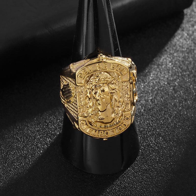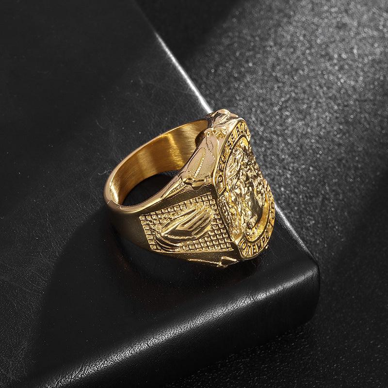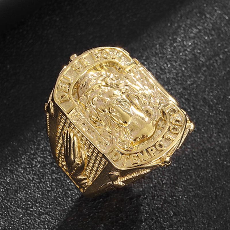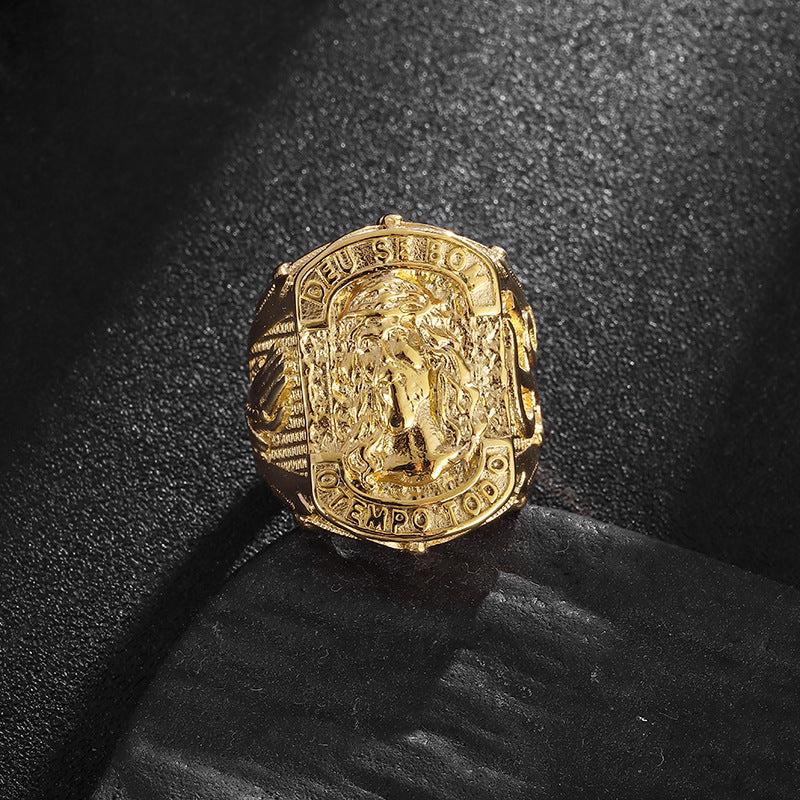 This hip hop titanium steel ring features a prayer hand design, making it a stylish and meaningful gift for men.