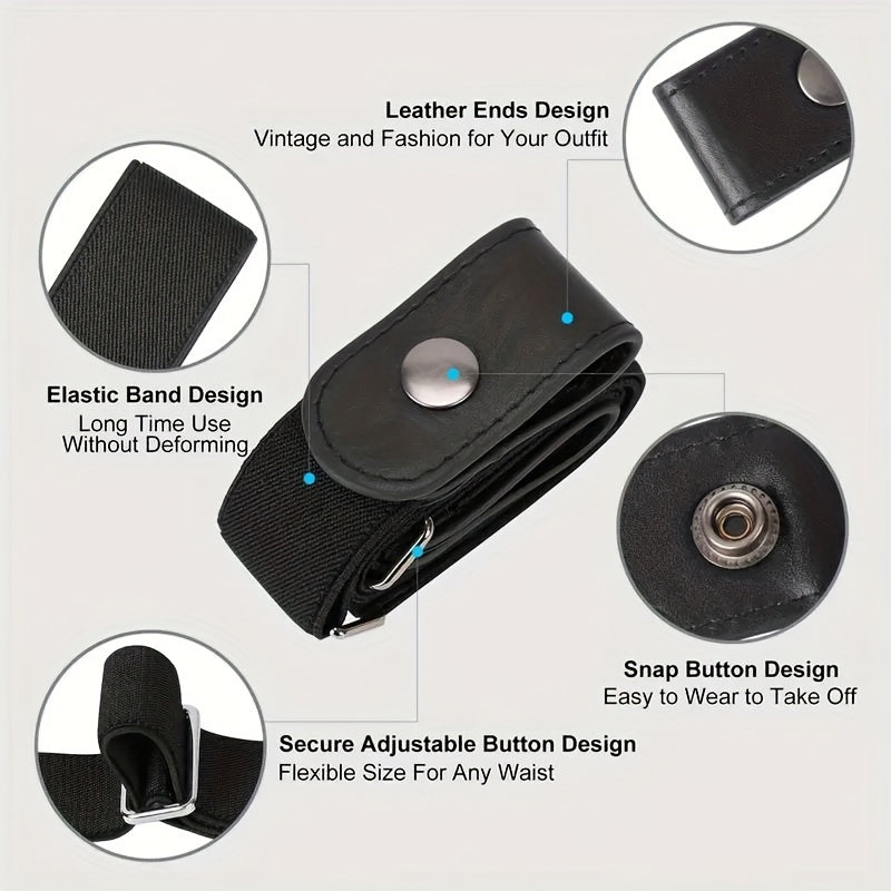 Invisible Adjustable Men's PU Leather Belt with Round Clasp