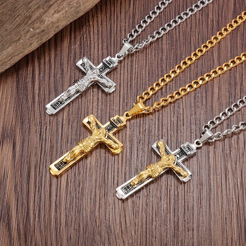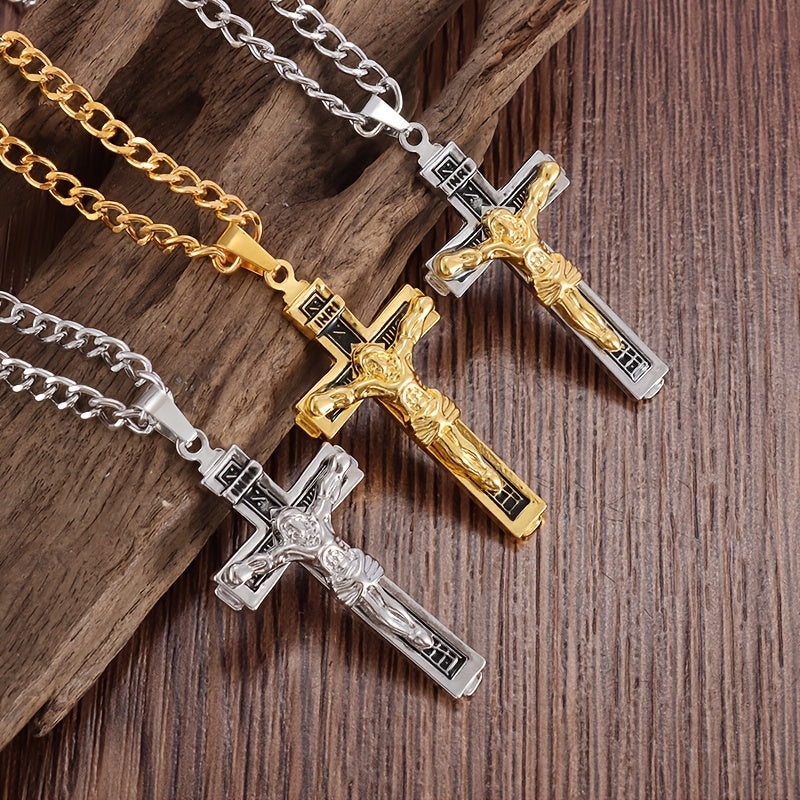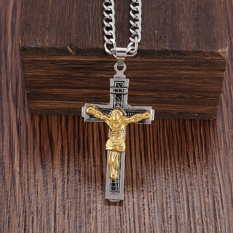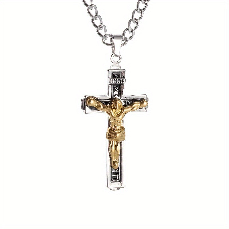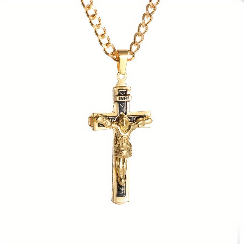 This crucifix pendant necklace is a beautiful Christian religious jewelry piece that is perfect for baptism and prayers.